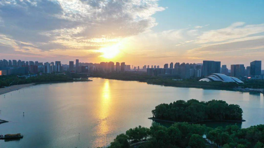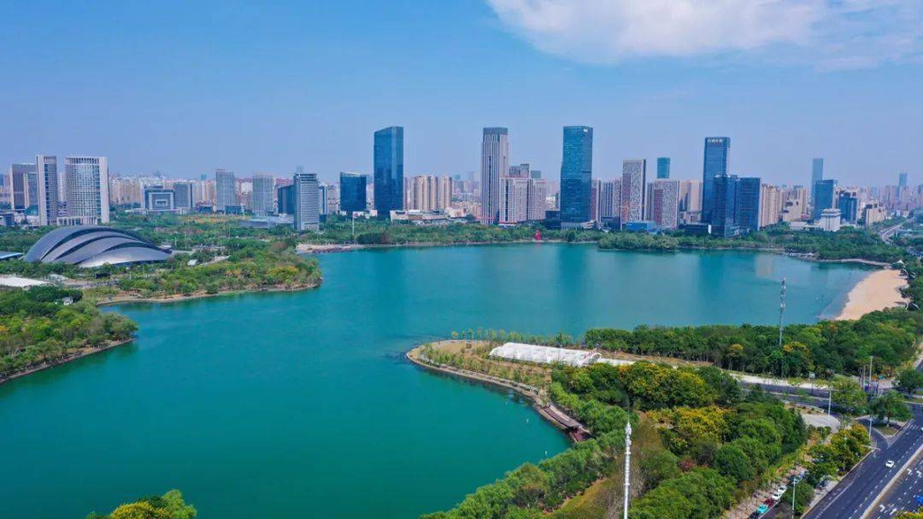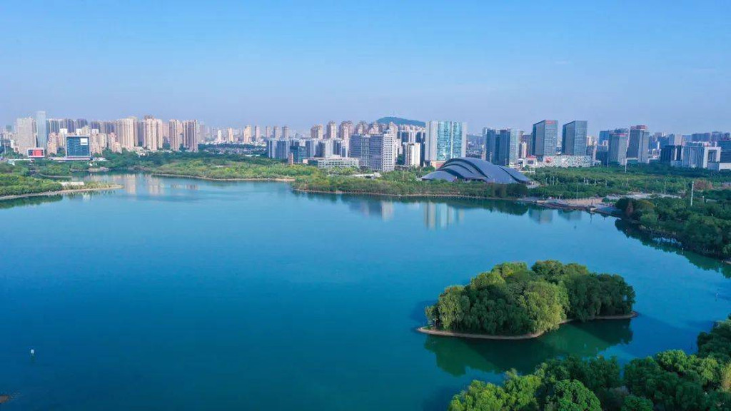 合肥市政务区的中心地带,有一处优美湖泊,呈天鹅状,故名天鹅湖。新生的城市倒映在水面上,为这座内陆城市带来了开放的海洋气息。