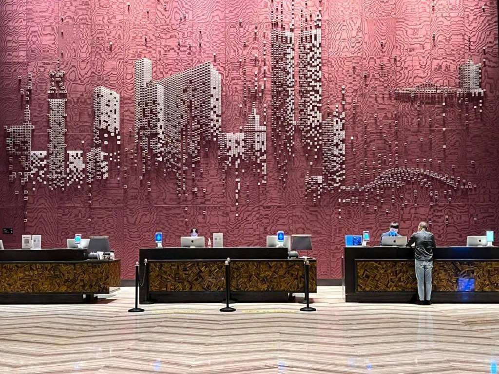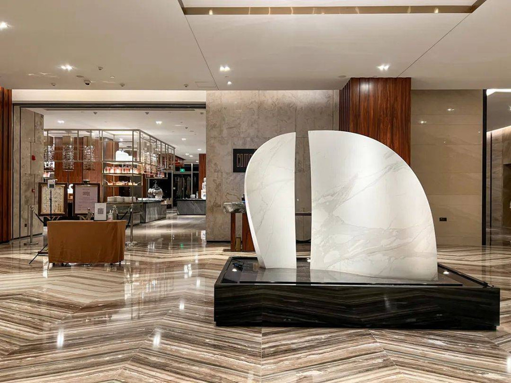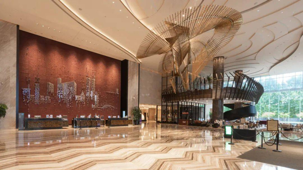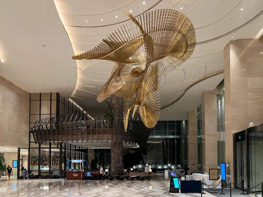 步入酒店大堂,可看到挑高的大堂空间,尽显恢宏大气,而颇具艺术感的建筑特征突出了空间的高耸。大堂穹顶上悬挂的艺术品宛如一只准备归巢的凤凰,又如一颗跳动的心脏,给人无限遐想空间。