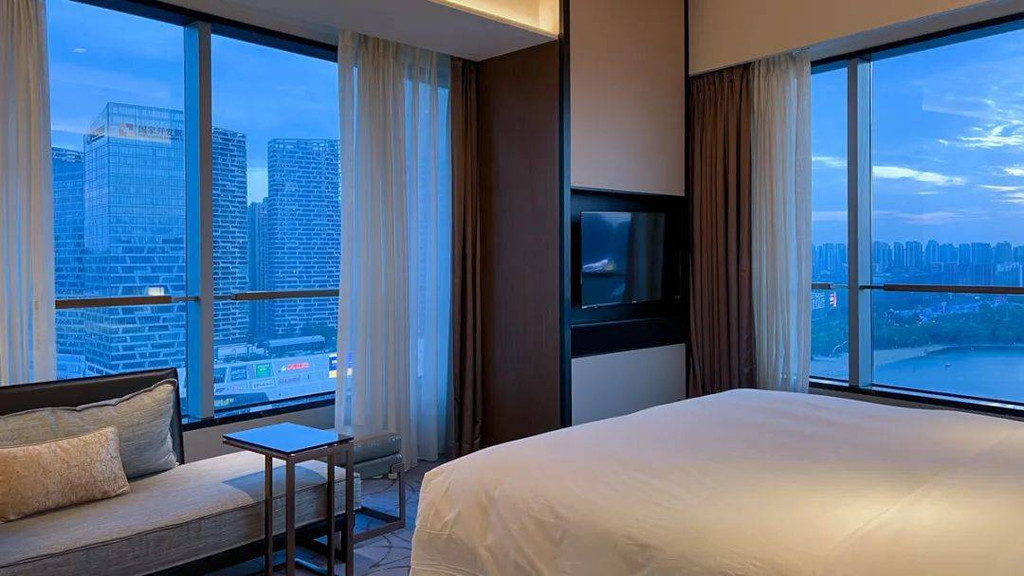 这里更是休闲或商务宾客理想空间,宽大的落地窗能将外面的城市景观和天鹅湖旖旎风光一览无余。