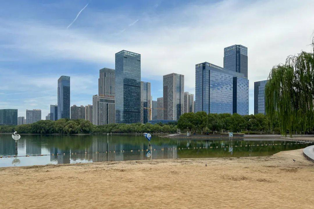 位于天鹅湖南岸有一片沙滩,如今成为了政务新区最热闹的景点。