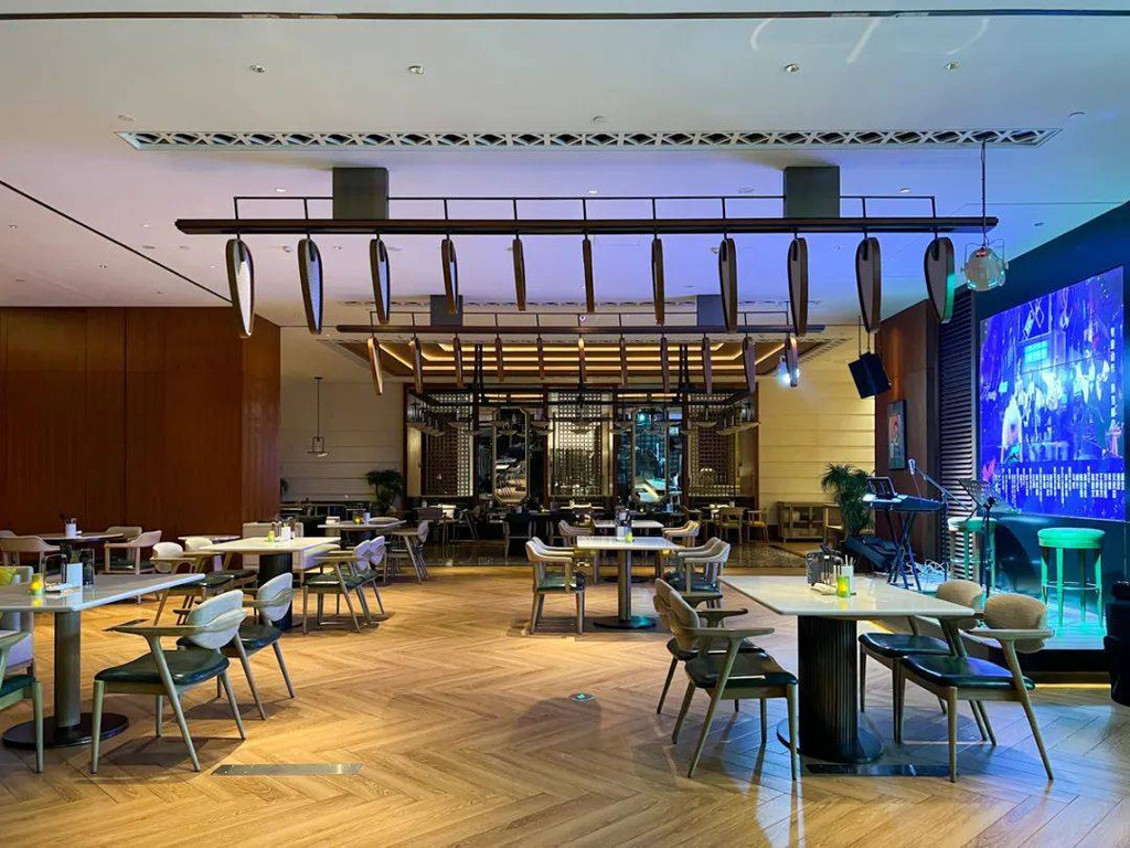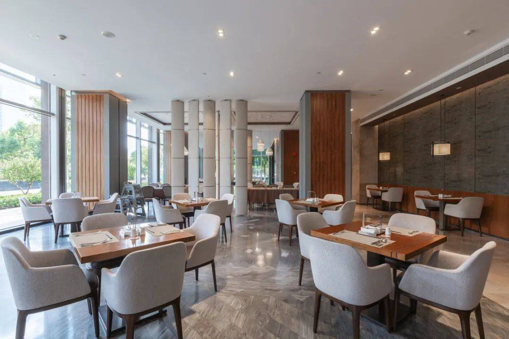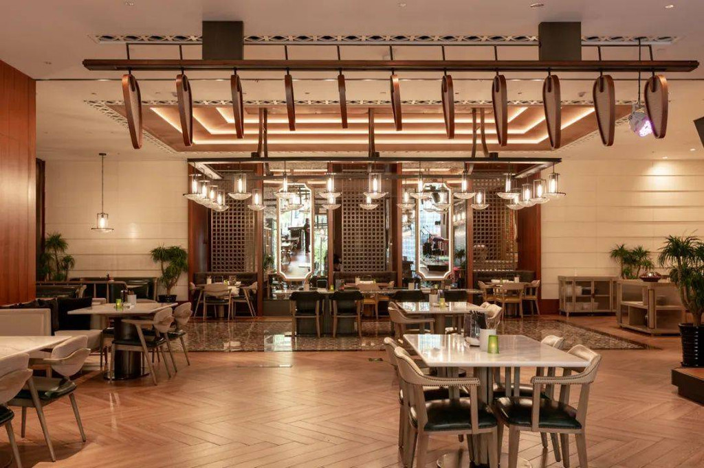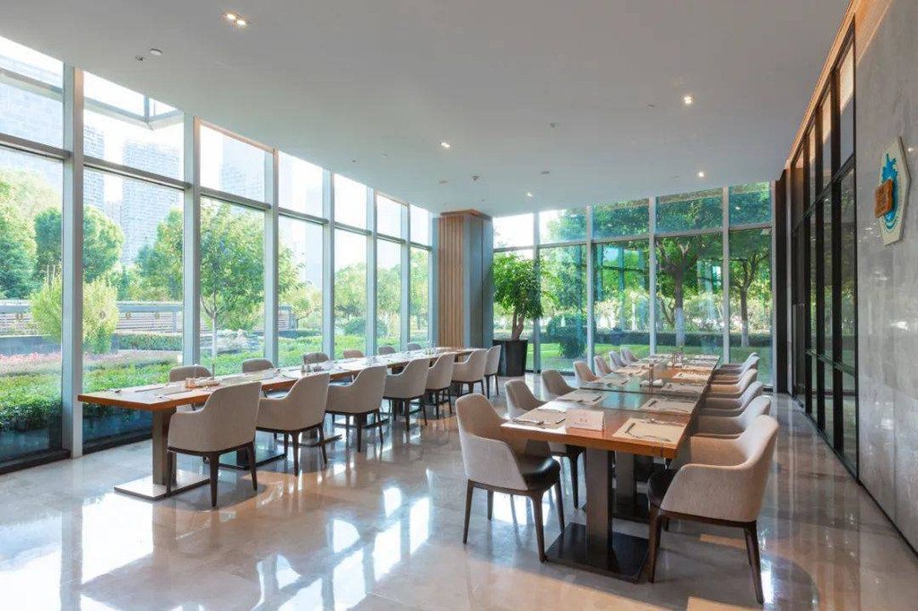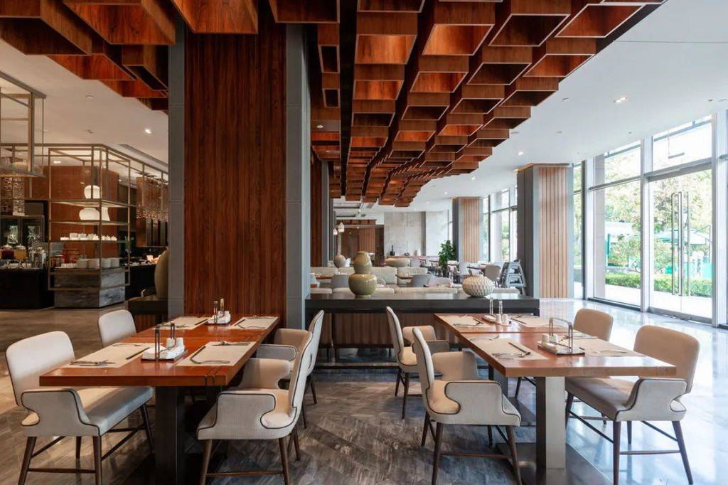 湖畔全日制餐厅采用宽大的落地窗,使得整个空间变得更加敞亮,同时也营造出温馨又自然的用餐氛围。在这里可以穿过玻璃门抵达酒店私家花园,在草坪边可以惬意享受多款烧烤及精酿啤酒美食。