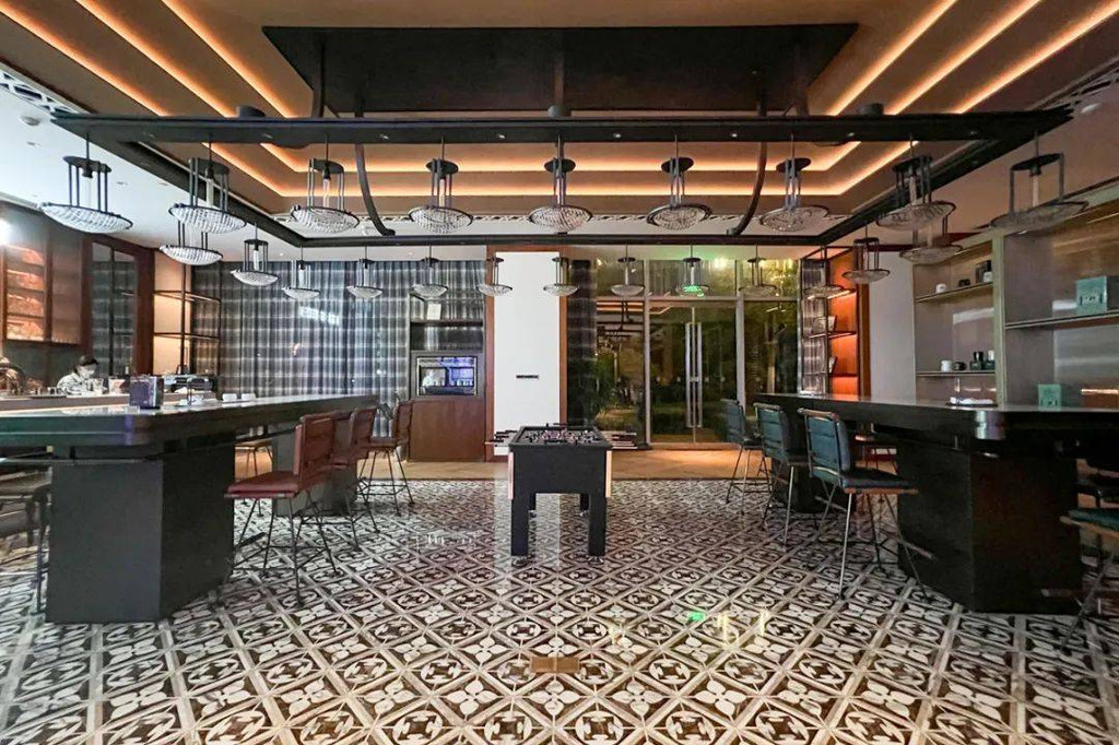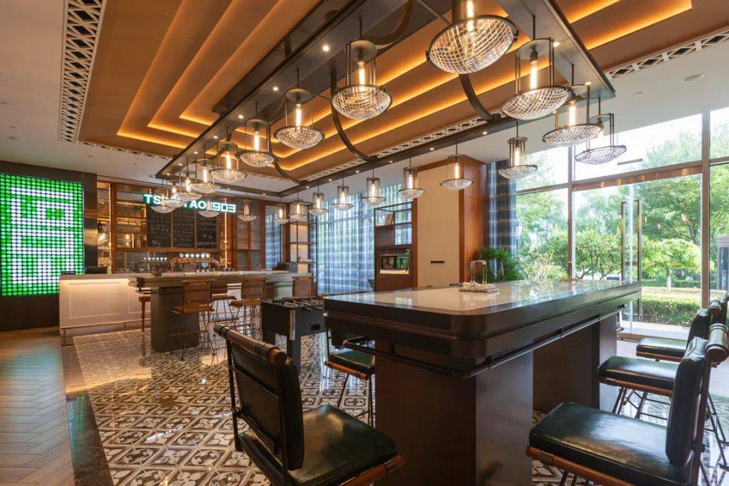 酒店设计由行业知名设计公司HBA操刀,设计师不仅遵从了洲际酒店新的装修风格,还融入了安徽地方特色。比如大堂前台接待背后城市特色建筑装饰,湖畔全日餐厅前的灵璧石,彩丰楼中餐厅迎宾台上的迎客松,以及前往TSINGTAO1903酒吧走廊顶上的活字印刷术等。