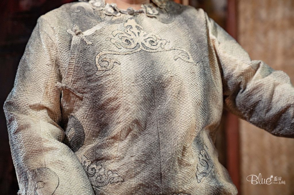 赫哲族的阿妈们,还给我们唱了赫哲族的歌谣,虽说是听不懂,但优美的旋律是共通的。这些鱼皮衣服工序复杂,做好一件鱼皮衣需要一两个月,而一件鱼皮衣要卖到上万,的确是贵如千金;但鱼皮衣防水防油还防风防寒,最厉害的是,火也不容易点燃鱼皮衣,卖这么贵的价格也是物有所值的。