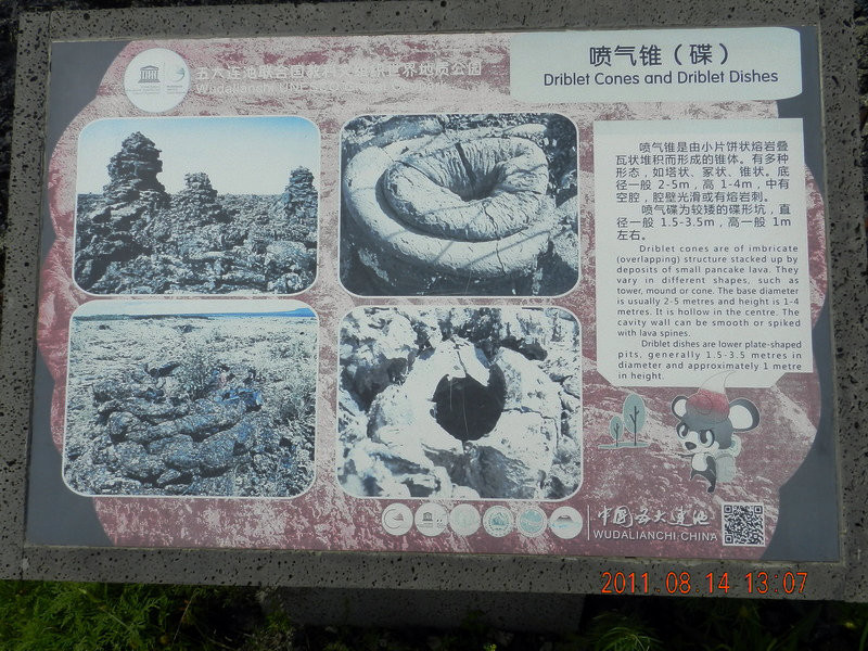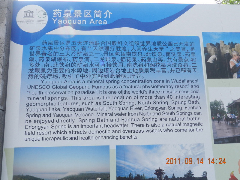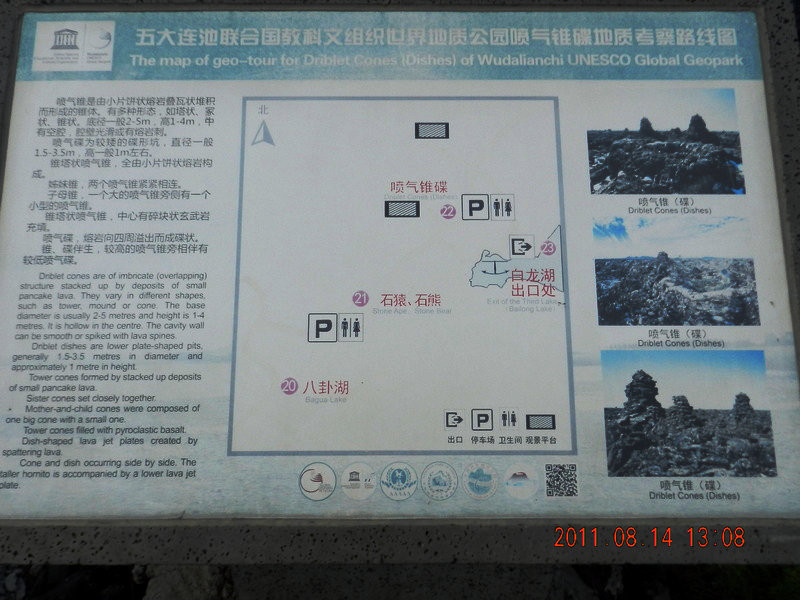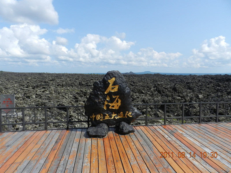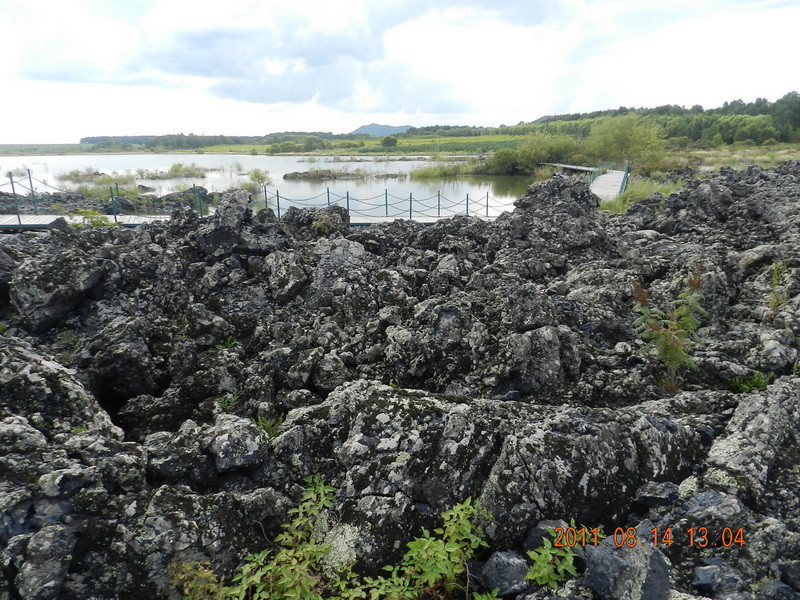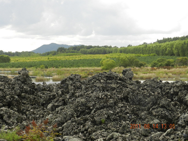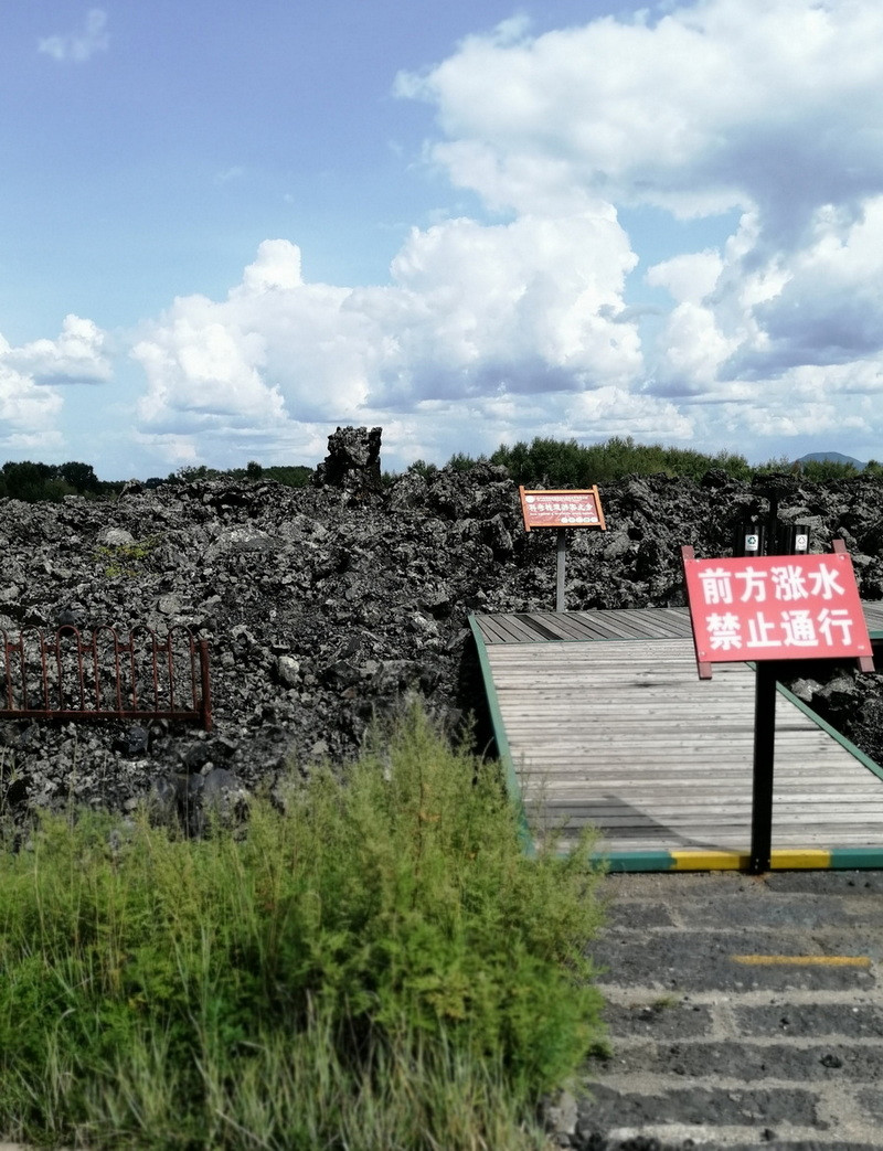 8-14从五市坐5元公交去景区下车,这次景区看门儿连看都不看就让车进了,在路边刚下车找车时碰巧又碰到昨天打的的司机,100元包车,先去堰塞湖,第二池最好看,铺地的黄花盛开,第三池反而有些发臭。然后去老黑山,司机在外等,我免票,先爬火山顶,再乘坐30元景区观光车看火烧石景区,下午的观光车上只有我一个人,出来包车司机带我去药泉和南北饮泉。