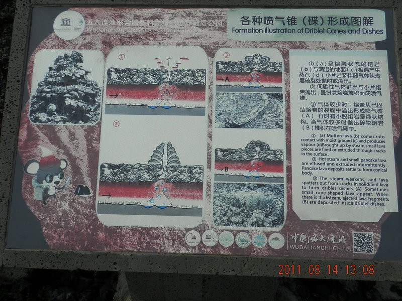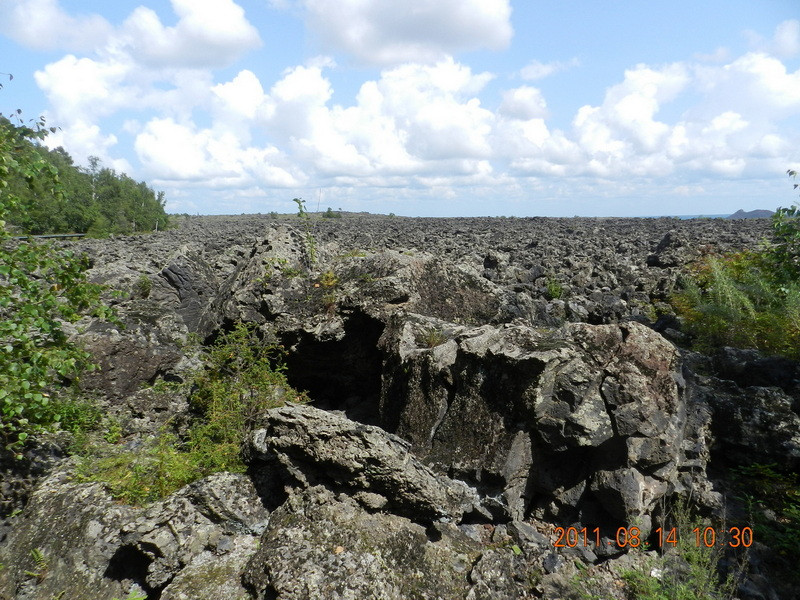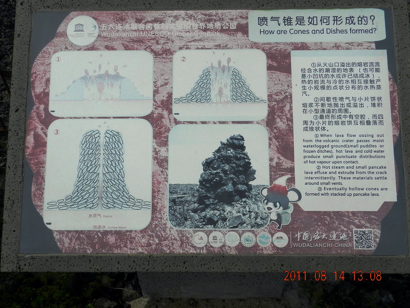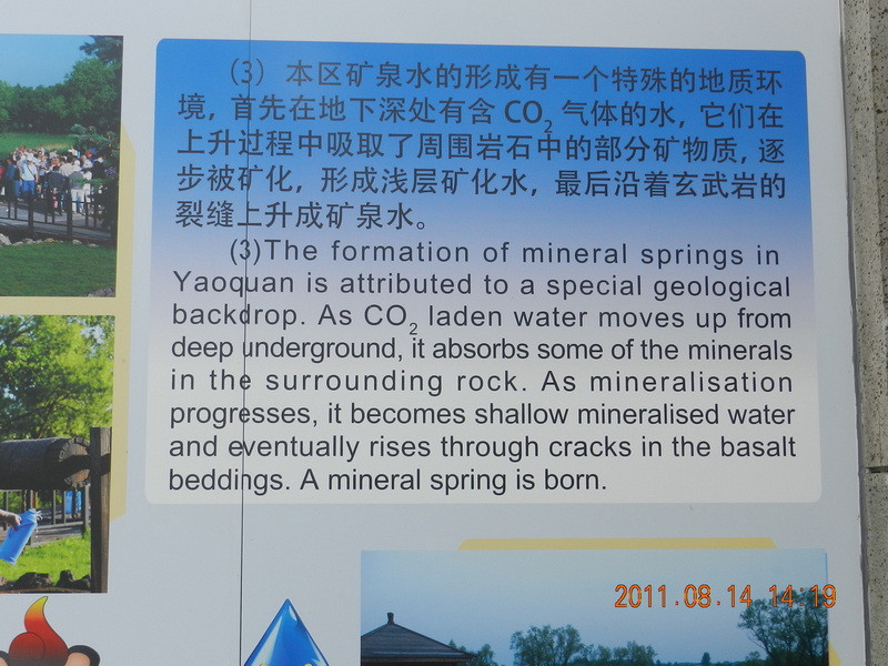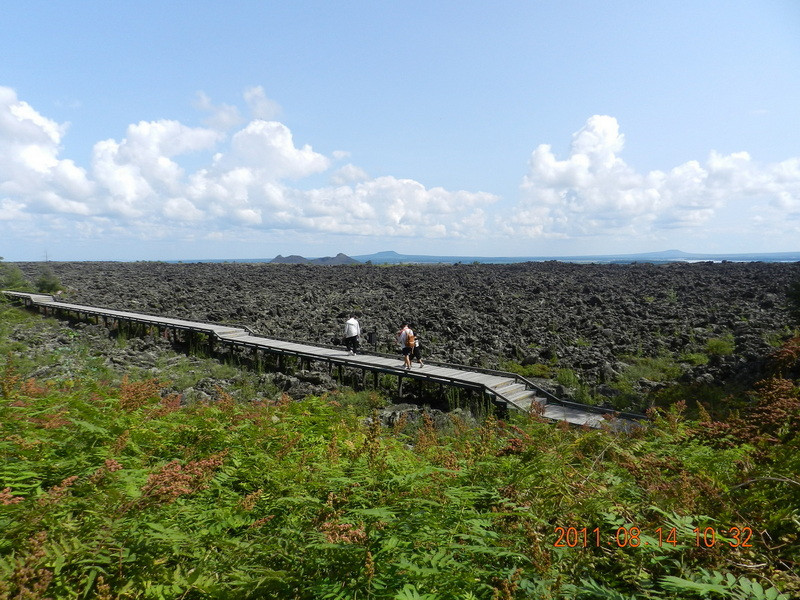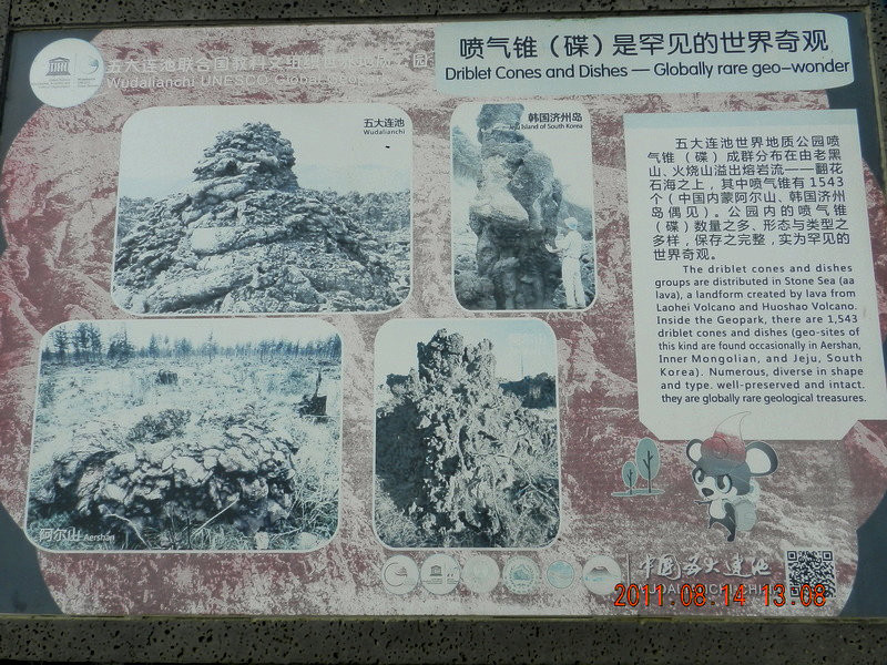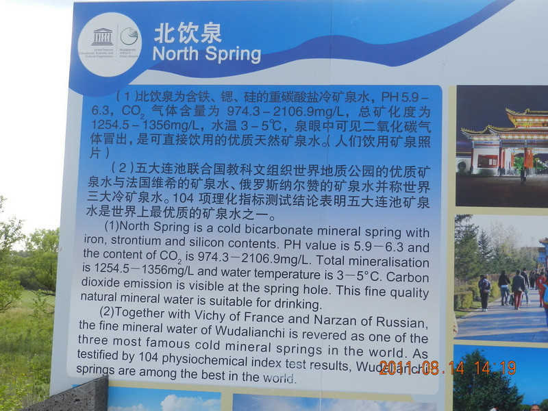 8-14从五市坐5元公交去景区下车,这次景区看门儿连看都不看就让车进了,在路边刚下车找车时碰巧又碰到昨天打的的司机,100元包车,先去堰塞湖,第二池最好看,铺地的黄花盛开,第三池反而有些发臭。然后去老黑山,司机在外等,我免票,先爬火山顶,再乘坐30元景区观光车看火烧石景区,下午的观光车上只有我一个人,出来包车司机带我去药泉和南北饮泉。