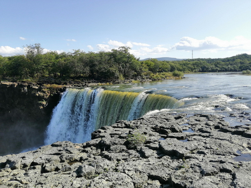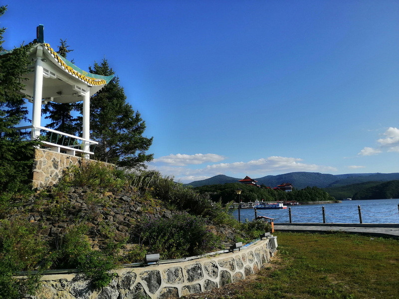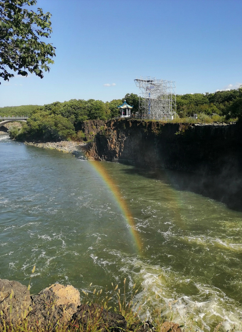 还有:恰好这镜泊湖因为官方搞什么“旅发”活动明天要封园,我提前一天还能入园是不是应该幸庆?看完瀑布正好听到一个人说三点钟有跳水,于是稍等片刻就看到了这个表演。后来搭观光东去码头,前后都被警察挡住为当官们旅发让路不让我们游客的观光车通行,是个唯一的小不确幸。