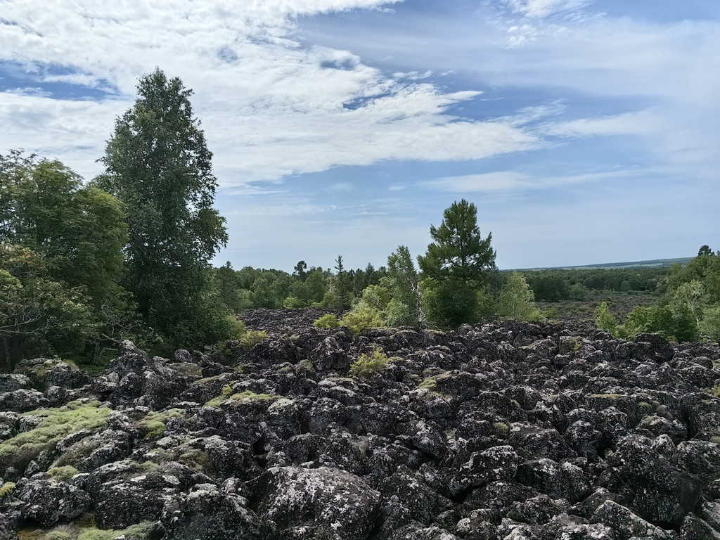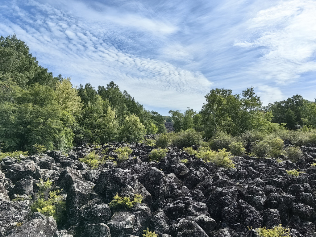 90多万年前,在林木苍莽的五大连池地区喷发了东西龙门山,滚滚岩浆似大河奔流,浩浩荡荡顺坡而下,形成了景象万千、造型奇绝的熔岩景观。