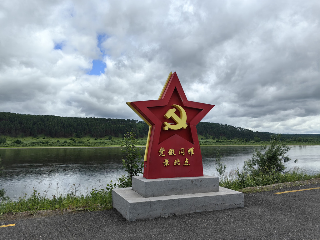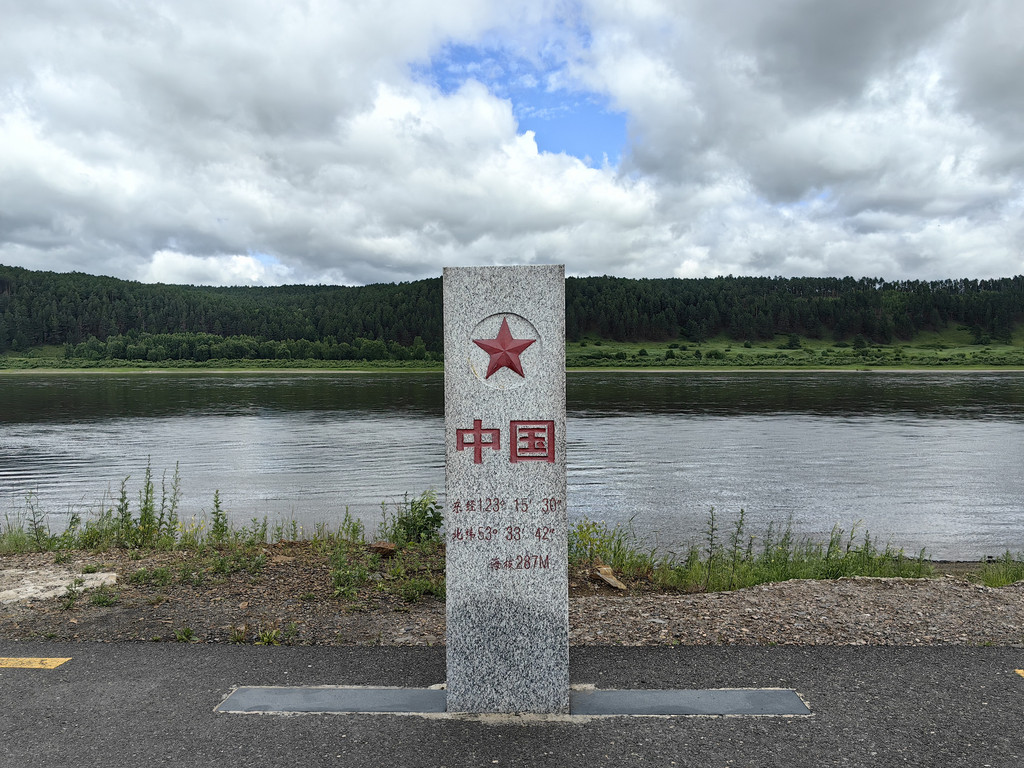 中国的最北点是位于龙江第一湾景区中的乌苏里浅滩,吃过早饭,我们从北红村出发前往最北点。行驶在公路上,可以看到对岸俄罗斯的原始森林,樟子松和落叶松交织在一起,一条大河静静地流淌。伴随着美景,1小时后我们到达龙江第一湾景区。