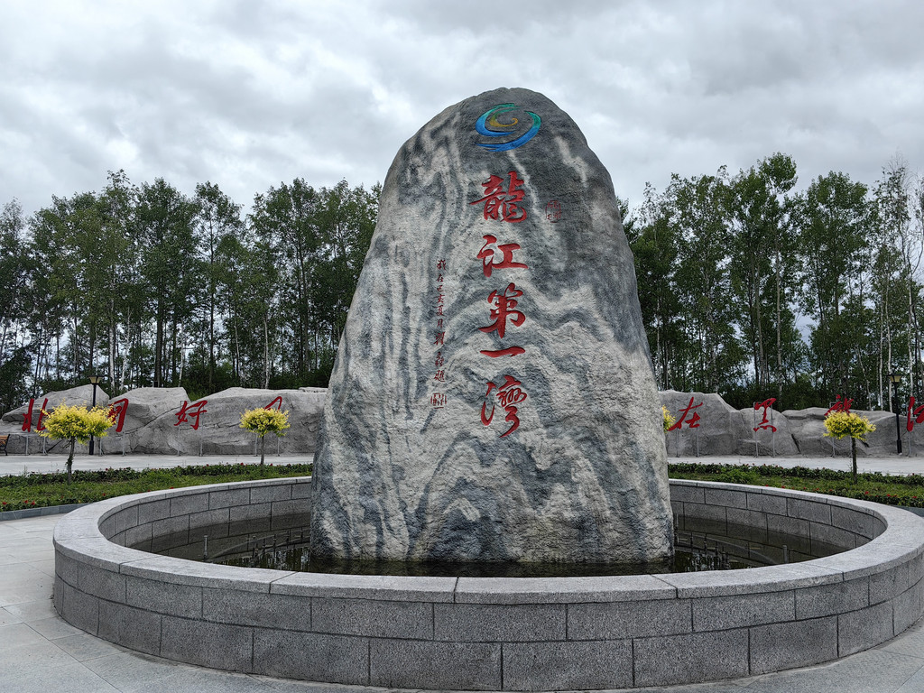 龙江第一湾是黑龙江流经大兴安岭地区图强林业局施业区红旗岭段的江面回流急转而形成的独特景观,江湾环抱的岛上,绿树成荫,花香草茂。岛的边缘经江水的冲刷,形成了一圈由鹅卵石与黄沙构成的沙带,在阳光的映照下,整个小岛就像镶上了金边。浑圆的岛屿与茂密的森林,造就了北国难以寻觅的美景。