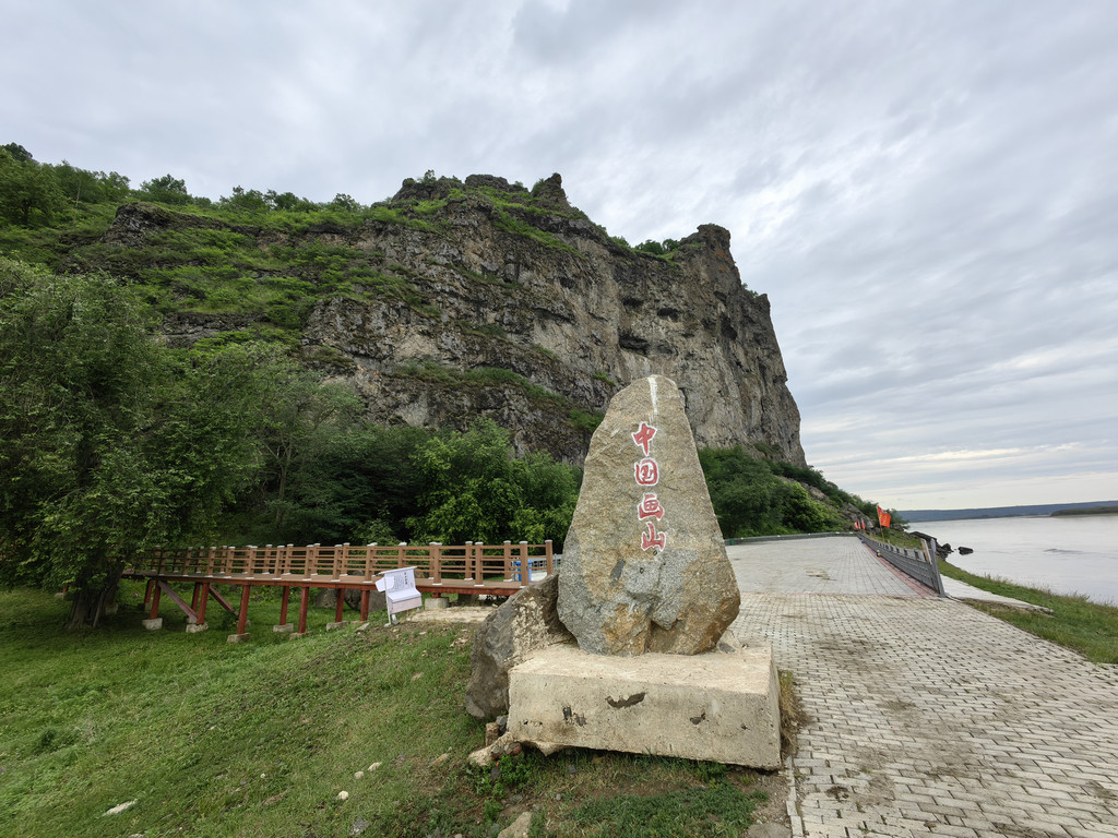 在黑龙江上最险的江段是迎门砬子,而最美的江段则是位于大兴安岭地区呼玛县的画山。游览白银纳村后,我们继续沿331国道行驶1个小时,到达呼玛县的画山界江景区。