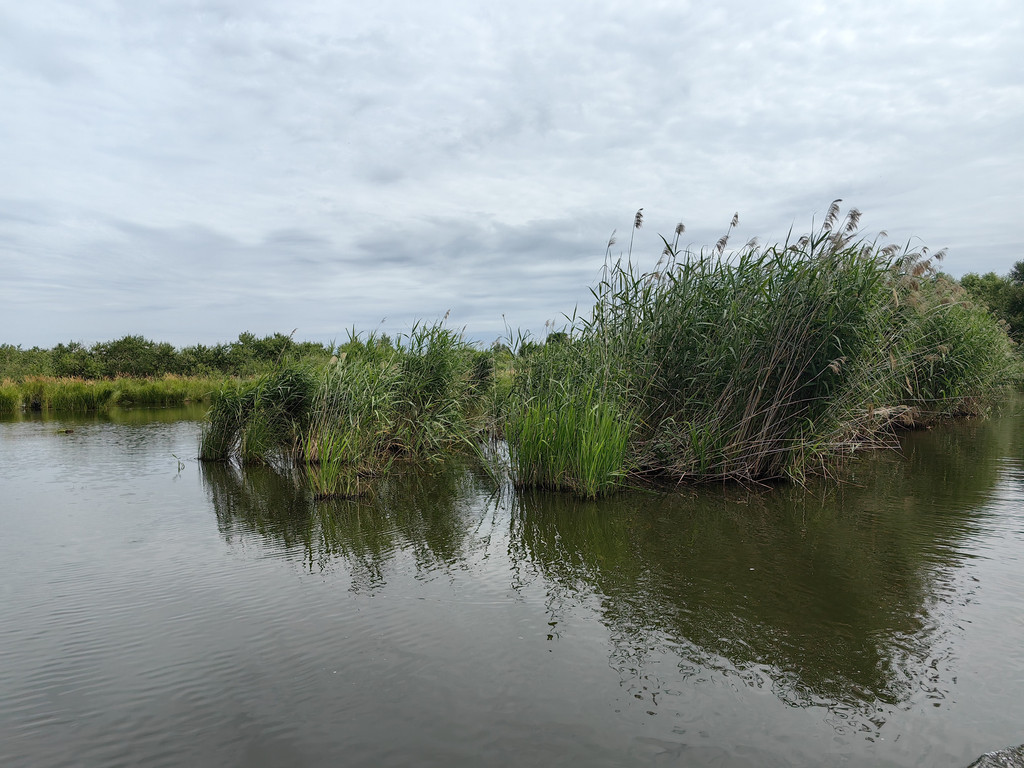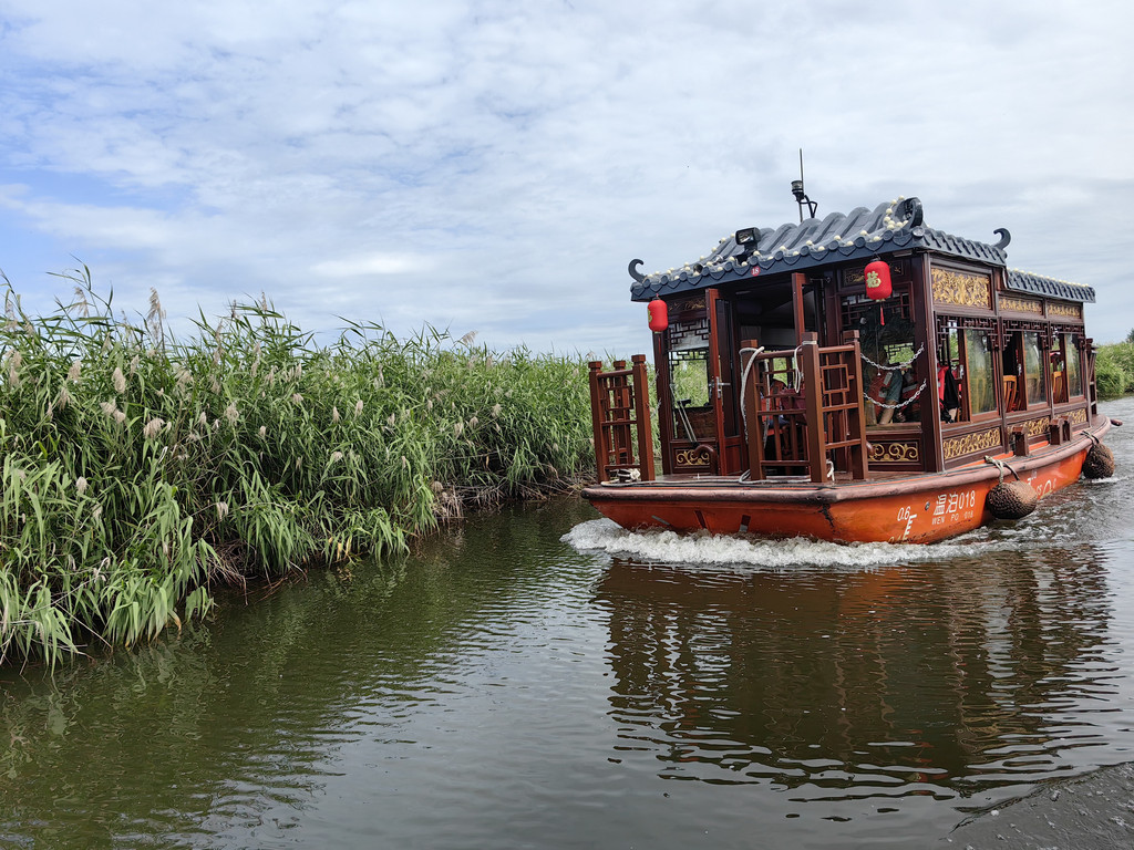 进入景区,首先乘船经过一片长满茂密植物的水面。