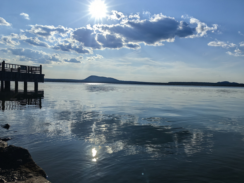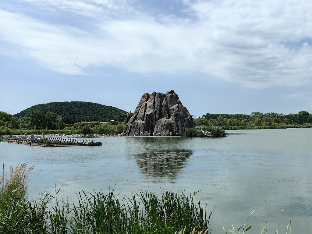 白龙湖(三池)丰水期面积在21.5平方公里,最深处可达36米以上,池底是熔岩和砂底各占一半。白龙湖是重要的“地质界湖”,湖区西岸是新期火山熔岩地貌,东岸是远古泥沙岩地貌,两岸穿越亿万年时光隧道,风光各异,可谓是“一湖二景”。开阔的水面倒映着蓝天白云和火山,美如仙境。