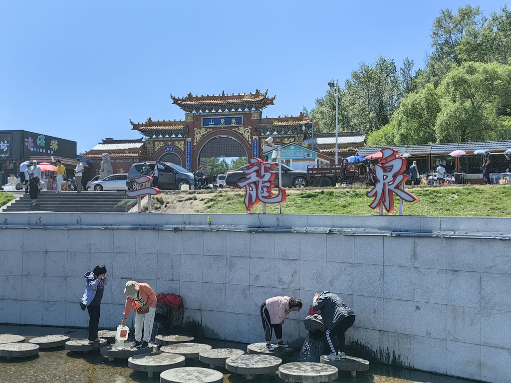 二龙泉就在药泉山的山脚下,许多当地人和游客都来这里接泉水。