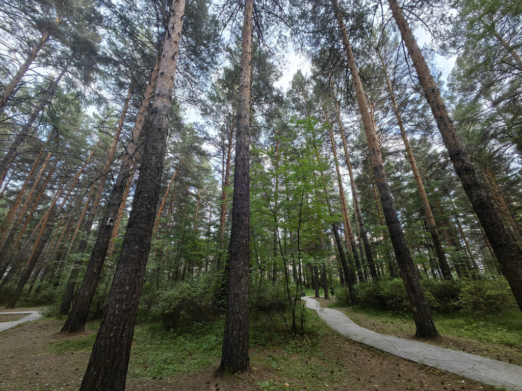 公园内林木茂盛,百年树龄的樟子松和落叶松随处可见。