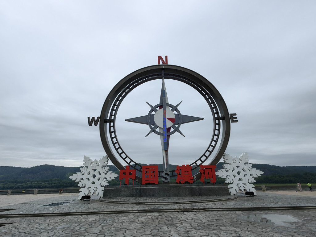 在苍茫的林海中继续行驶了约140公里, 2小时后我们抵达漠河市。在酒店稍作休息后,我们来到了漠河市的地标建筑-北极星广场。