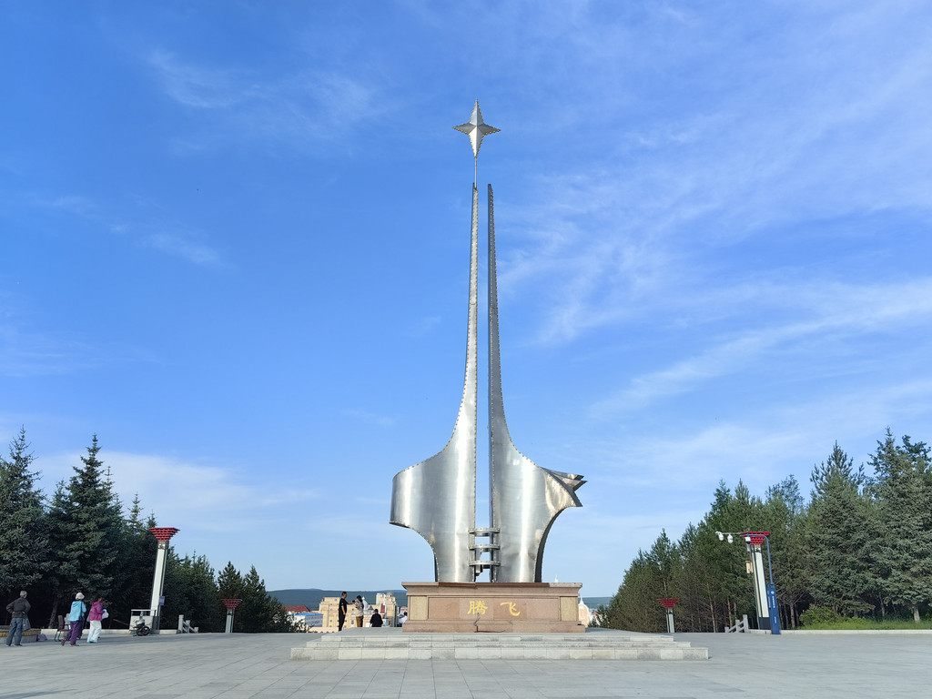 北极星广场建于2002年6月,占地4.5公顷,位于153个台阶至上的北极星雕塑是漠河的标志性建筑,名为腾飞。左面是一只展翅欲飞的天鹅,右面是一只引吭高歌的金鸡,意为漠河是“金鸡之冠、天鹅之首”,最顶端为北极星,意为漠河是祖国北陲的一颗璀璨明星。