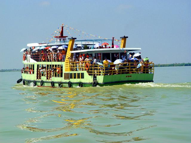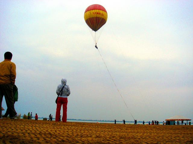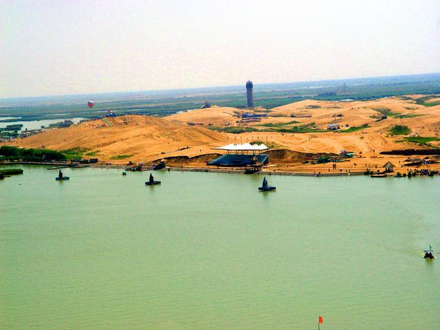 经过20多分钟左右的航行,大型游船将游客们送到沙湖风景区,下船后从湖畔爬上面前被称为大漠丝路奇观景区的沙山上,站在山顶上,人们就会感受到南沙北湖的秀丽景色。只可惜当天下着绵绵细雨,使一些娱乐项目不能像晴天那样正常开放。