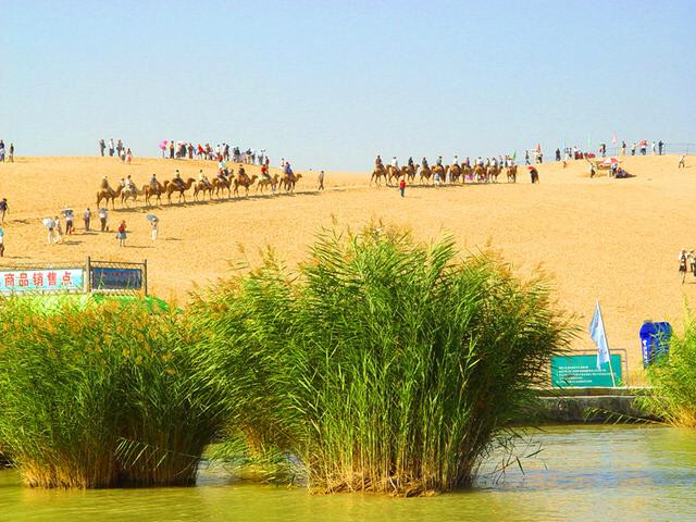 在这里沙与湖似乎是天造地设的一对情侣,相互依偎,缠缠绵绵。只见湖水碧波荡漾,沙海金浪起伏,碧水萦绕着黄沙,黄沙守护着碧水,这种惊天之美不由让人感叹大自然的造化是如此的神奇与不可思议。沙湖游,实在是给人们留下了太多太多的美好感受与回忆……