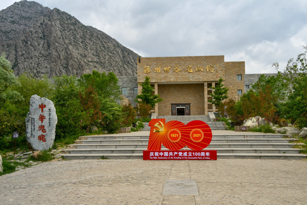 继续直行就是 银川世界岩画馆,岩画馆分为3层,一层是主要展区,主要展示中外各国的岩画历史及著名的藏品,二层是体验区,三层是出口,也是观光车的乘坐点