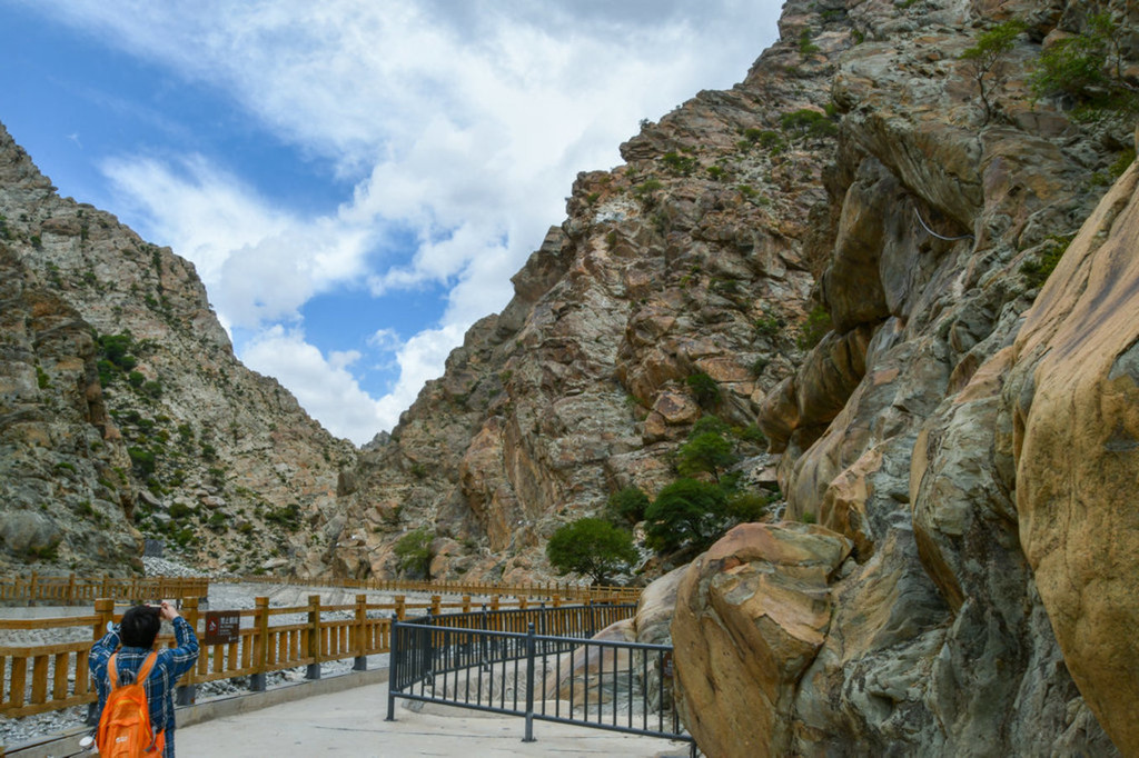 乘坐观光车约5分钟观光车乘坐点:必须穿过卖纪念品的房屋才能到达参观路线。就到了岩画遗迹坑,最佳参观是7月底——8月底,之前均是枯水期,很多景点(例如瀑布等)是没有观赏效果的,