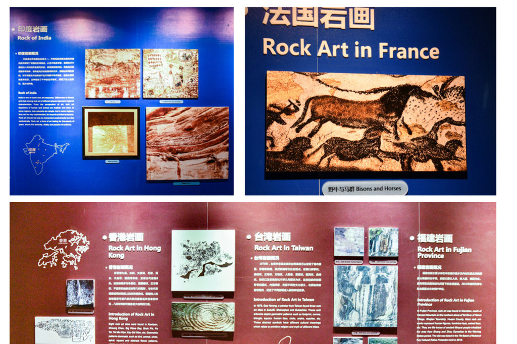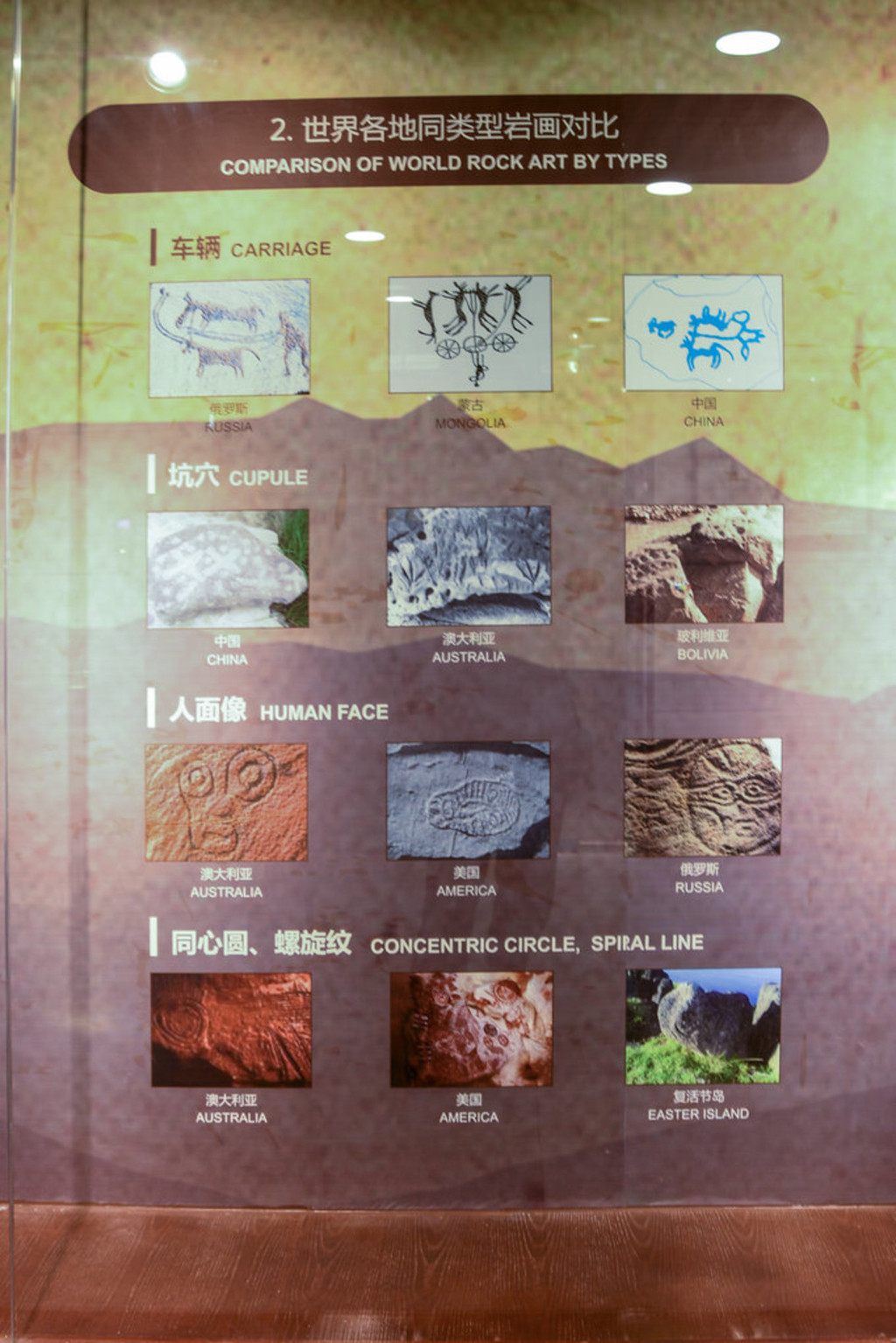 为照片关联地点馆内集中展示了全世界31个国家、200多个地区的最具代表性的精品岩画图录、拓片、仿制品和实物。