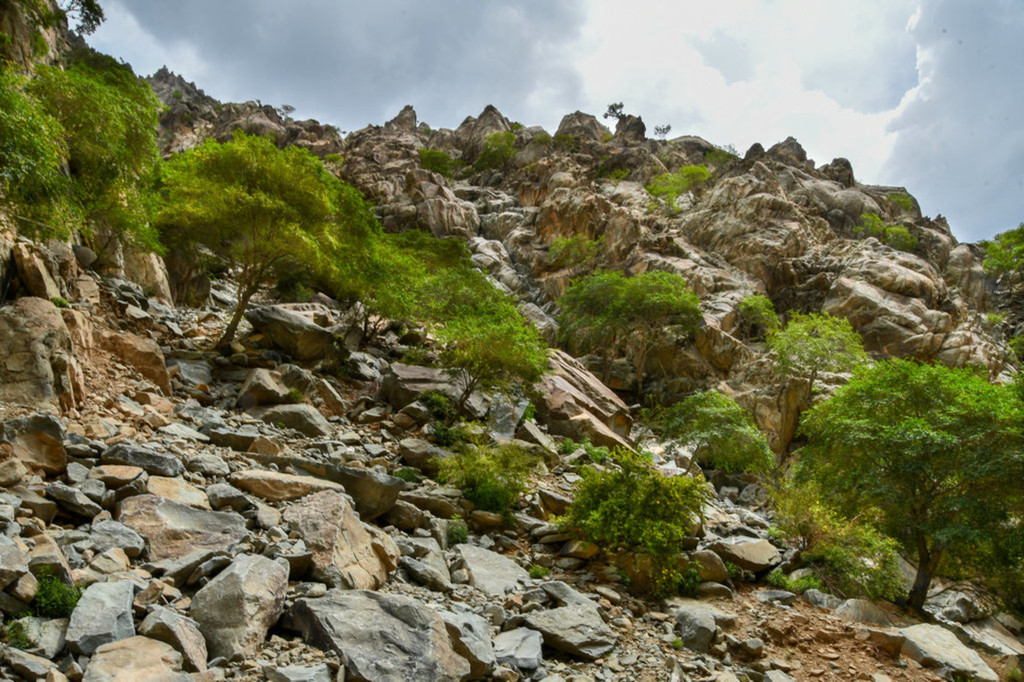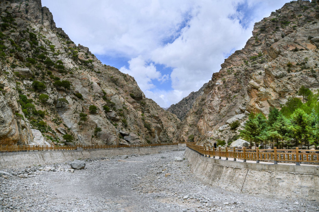 景区山谷中开凿一条人工水道,旱季时完全干涸,但若遇到雨季水大时可以疏水,避免水流冲击两岸的岩画。