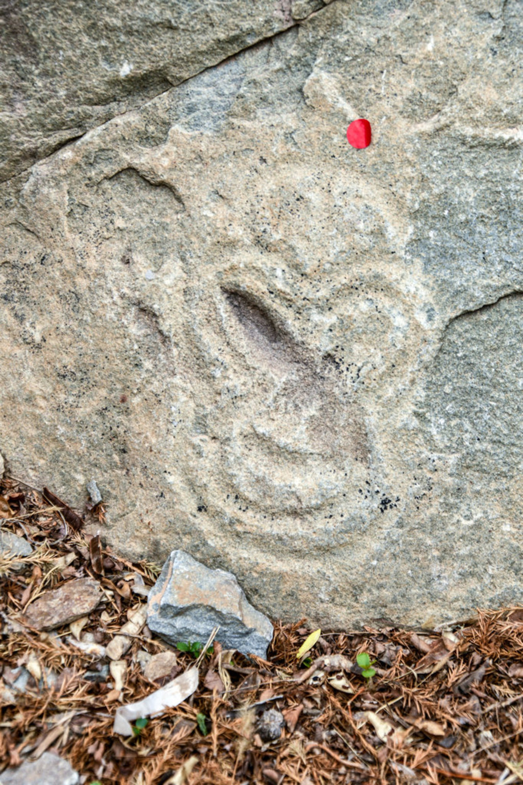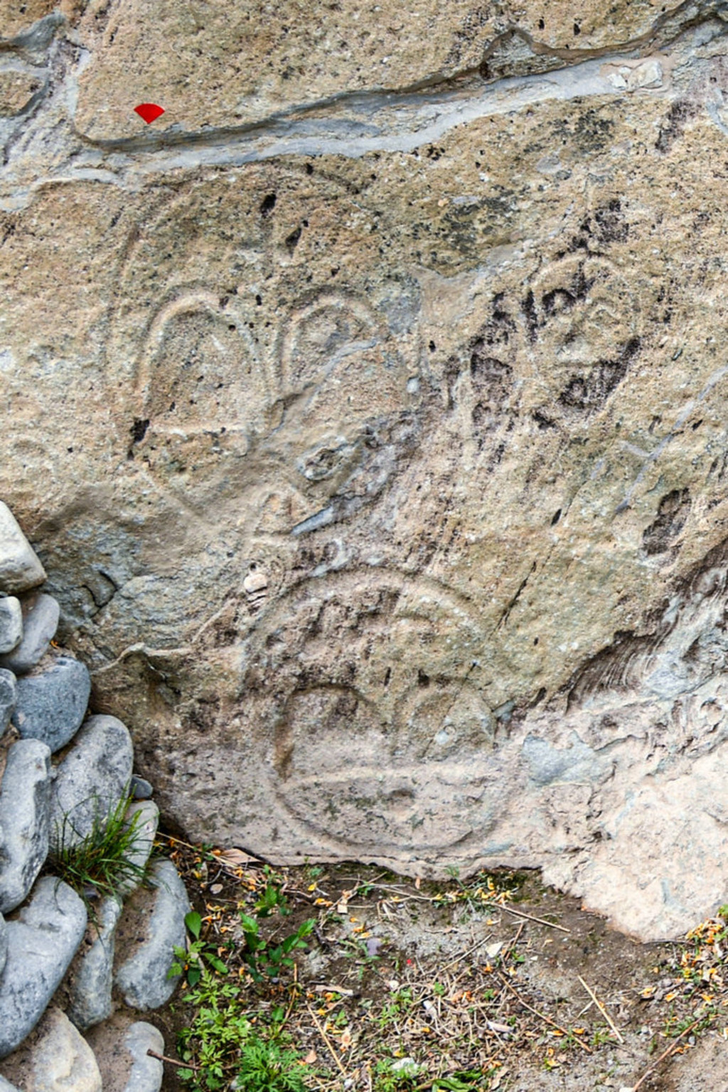 为照片关联地点“巨人脚印”:此石磨刻有一双巨人脚印,传说为当年巨人开山取水时所留,脚印岩石在世界各地都有发现,学者们普遍认为,那些被赋于了神力的脚印具有极强的感生功能,似乎一旦踩到,使有会妇女怀孕生子,反映的是典型的生殖崇拜观念