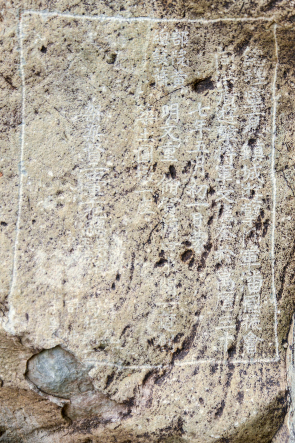 为照片关联地点明嘉靖题刻:题记刻明代嘉靖十七年(公元1538年),记载朝廷委派四位钦差大臣修筑贺兰山口关隘和驻军的情况