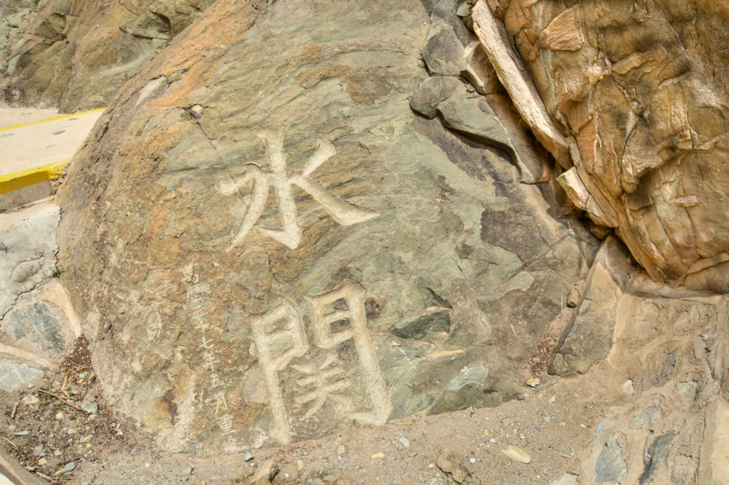 为照片关联地点为照片关联地点为照片关联地点“贺兰山水口”此石可有“水关”两字其上方还遗留有石砌残墙,是古代防洪设施,能减缓山洪流速,疏导山洪及泥石流对山口的冲击,明万历三十七进行过重修