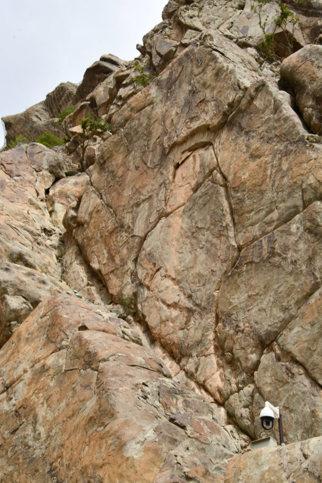 为照片关联地点为照片关联地点为照片关联地点最著名的“太阳神”岩画(见红旗下方)。这幅岩画位于距离地面20米高的垂直岩壁上,是贺兰口发现的地理位置最高的一幅岩画。