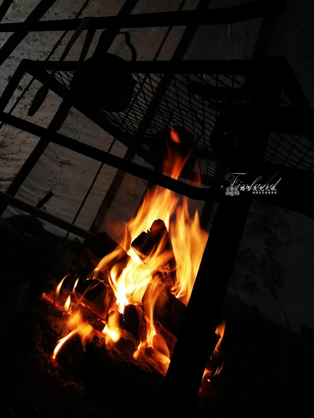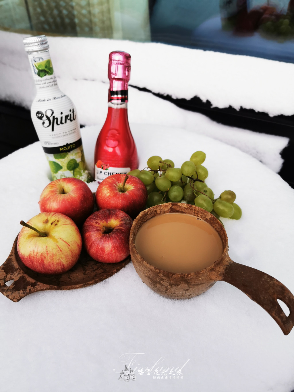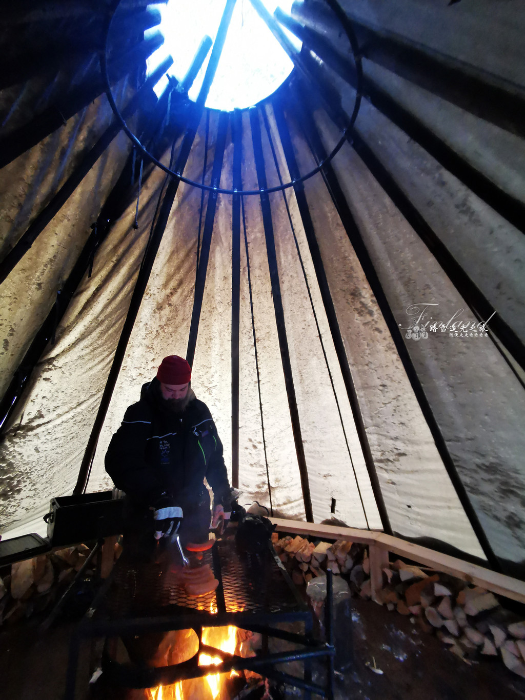 当我们欢乐的在雪地撒欢时,小哥已经默默去到附近的帐篷中生火为我们准备热饮和烤香肠了。