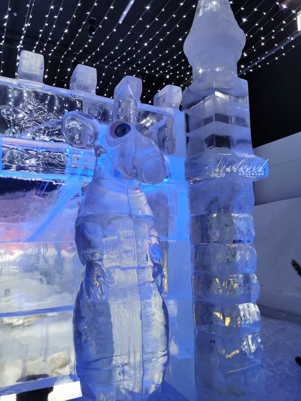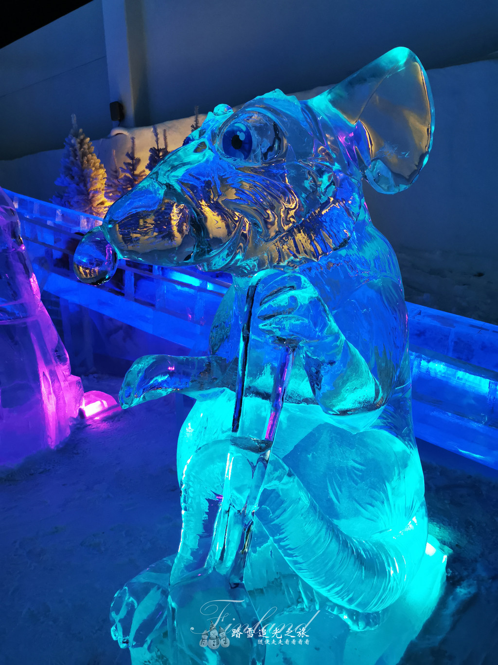 因为今天的破冰船行程是下午2点左右,我们差不多11点左右抵达冰雪城堡,一部分冰雕在这栋建筑内,地方不大,每年根据中国生肖主题,不过这个老鼠好像长的怪怪的~