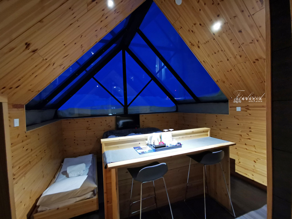 小吧台后面就是床,床下的左右两边还有两张可移动的小床,当然住玻璃屋的主要目的并不是舒适,最主要的就是躺在床上看极光! (虽然也不知道能不能看到)