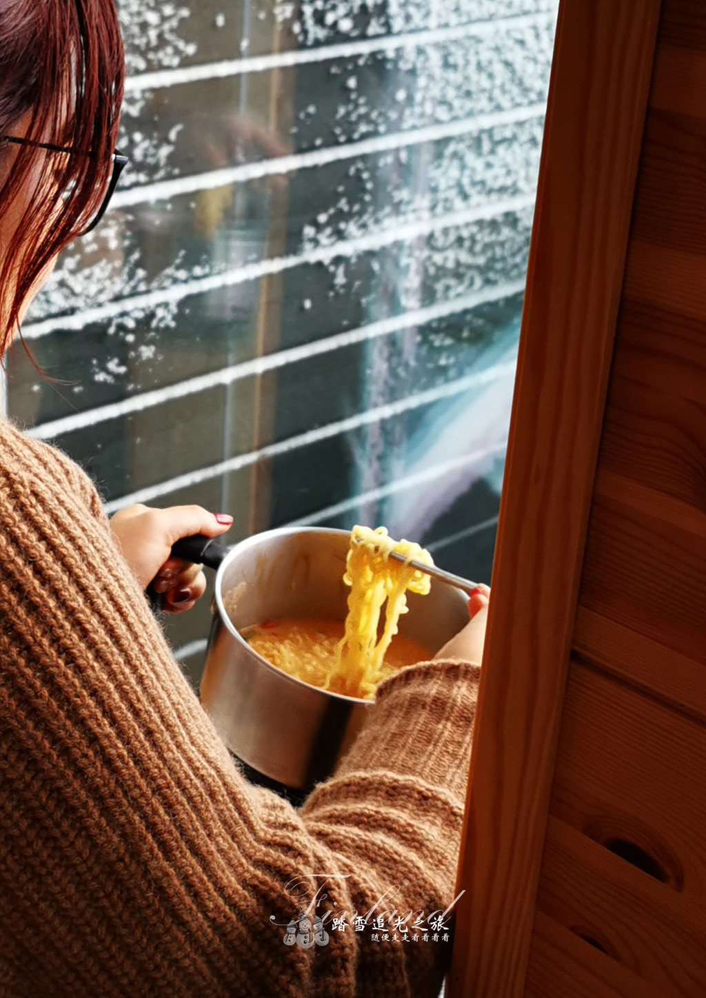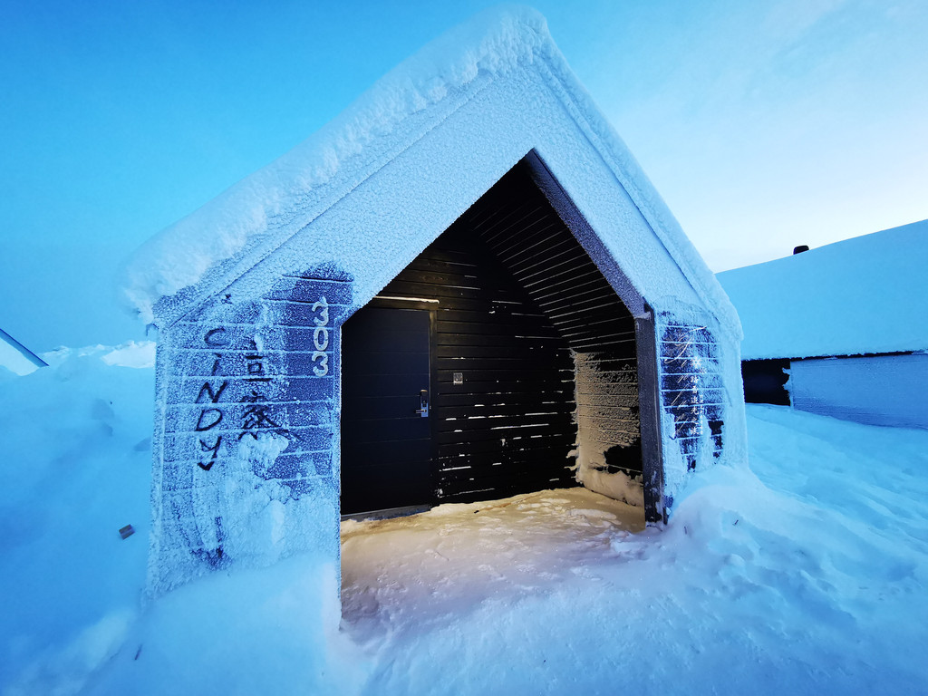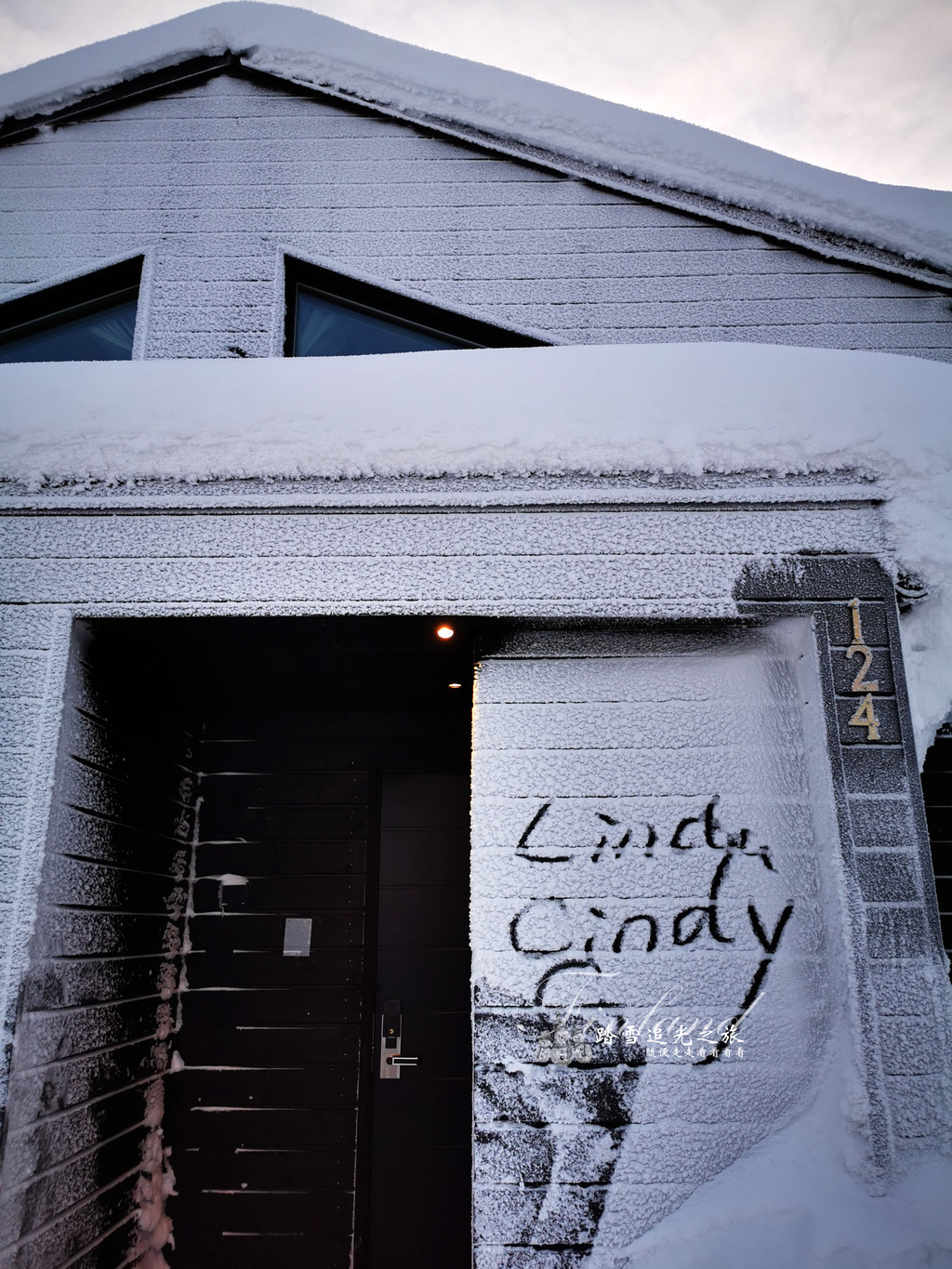 出租司机很nice,知道我们的房间有点距离还特地等我们再送到门口。踏着厚厚的雪,来到小木屋前,虽然已经差不多24小时没睡觉,但是我的鸡血模式正式开启了~