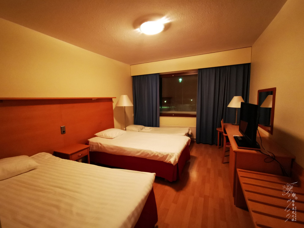 回程大巴也会根据不同地点停靠,我们今天住的酒店Scandic是位于凯米市区,离火车站步行大概15分钟左右,当时主要考虑到交通便利等因素,其实这里所谓的市区跟我们的概念上还是有差距的,本来这里就是个小城市,人也很少。酒店就是一般的连锁酒店,前台工作人员还算热情,可以到前台借用微波炉,一楼还有公共桑拿室。房间非常朴素~~~
