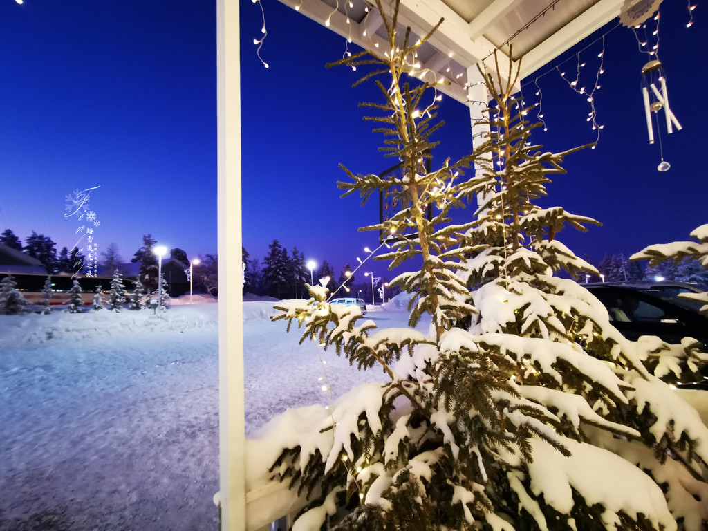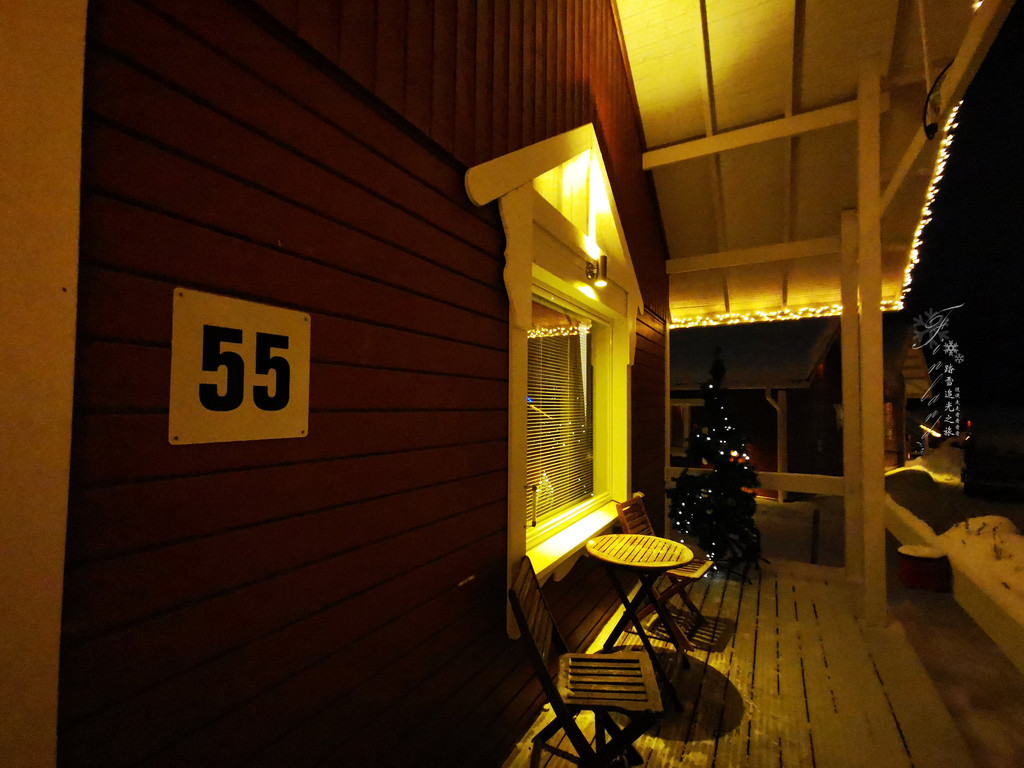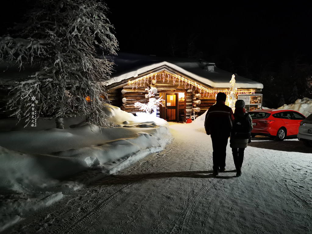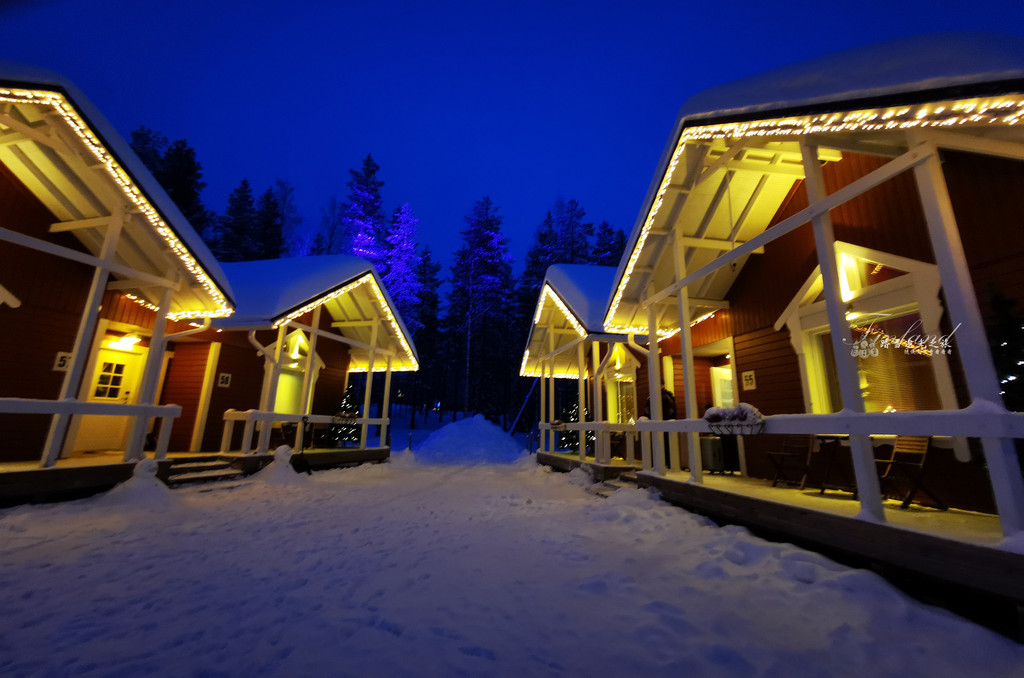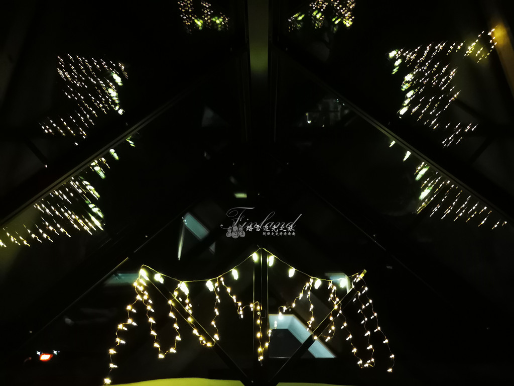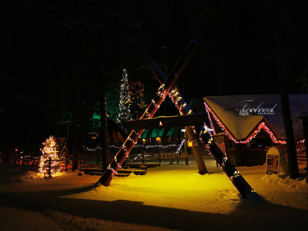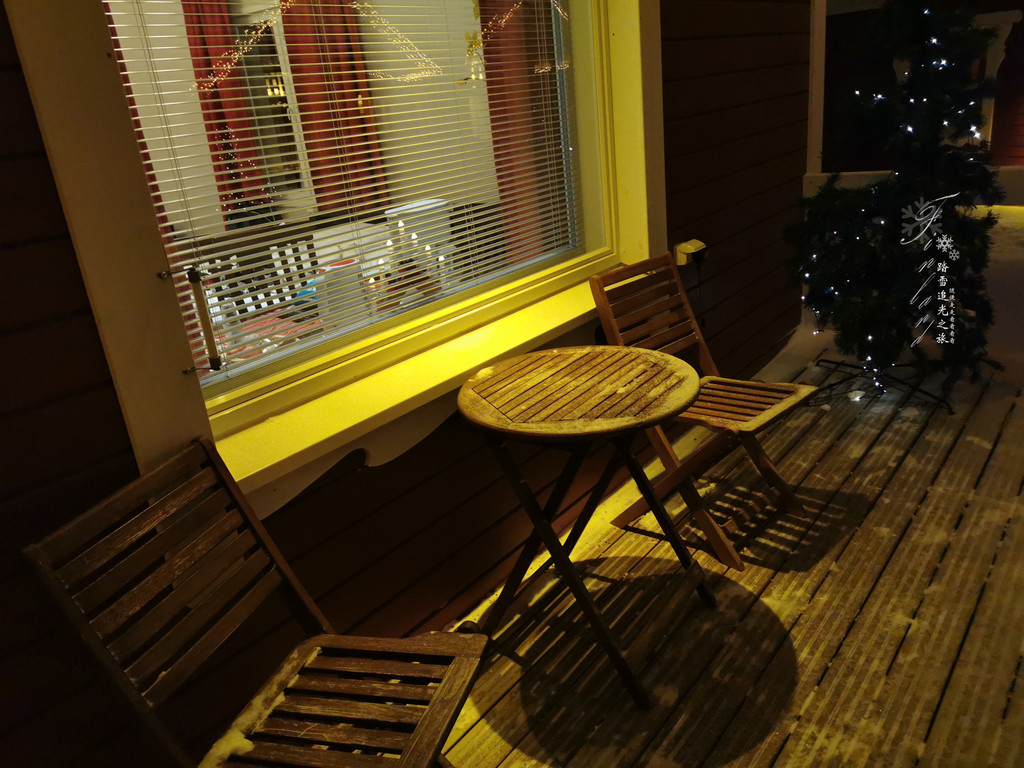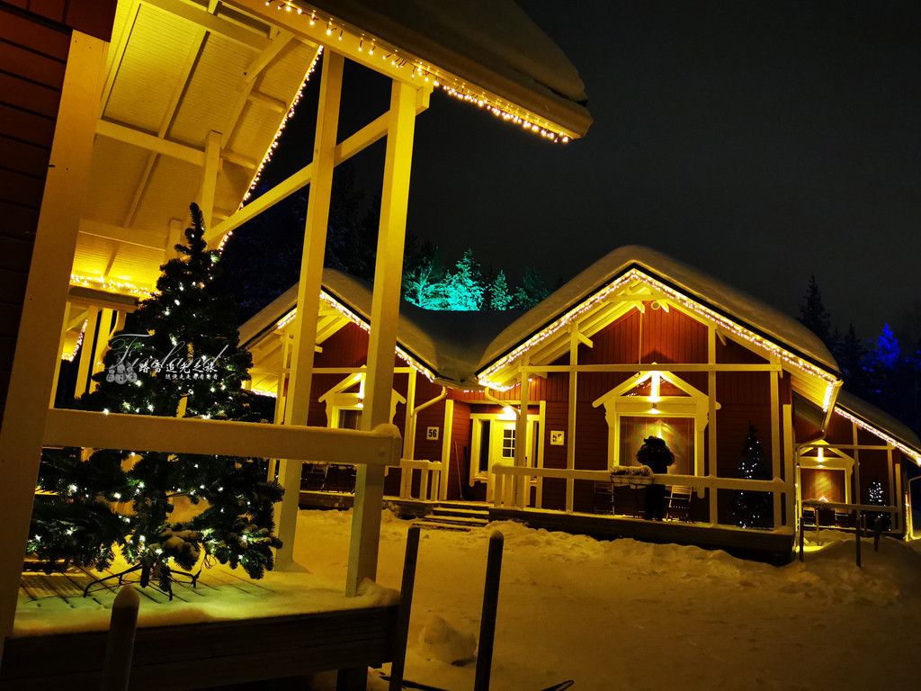 回去的路上还时不时观察着天空,不过村里的光源较多,哪怕是我们小屋后面的树林也被打上了各色灯光,因此除非极光指数特别高,不然很难观察得到。