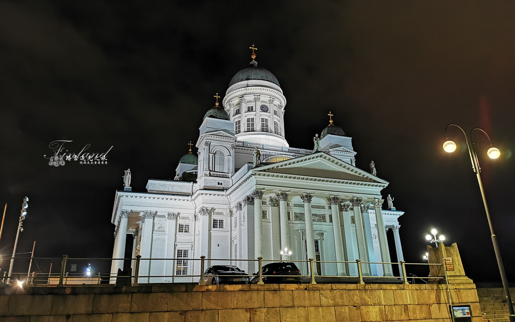 酒足饭饱继续夜游,跟着导航来到赫尔辛基大教堂。