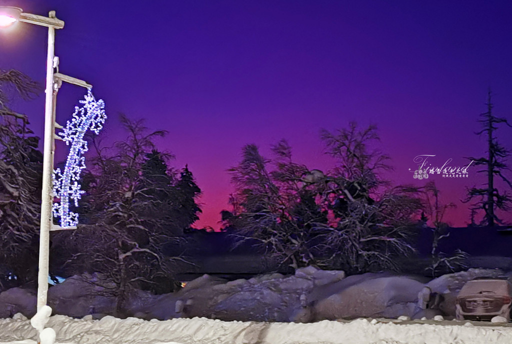 早上八点多,天还没亮就要告别圣诞老人村了~