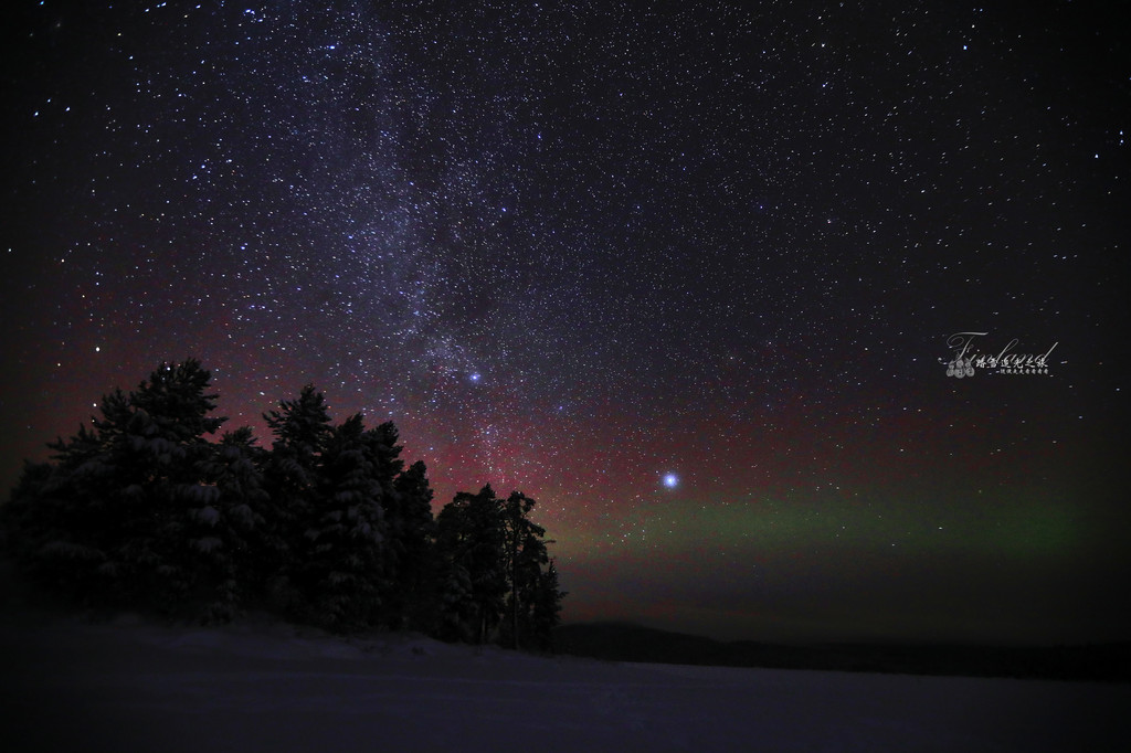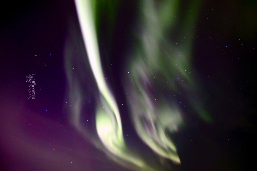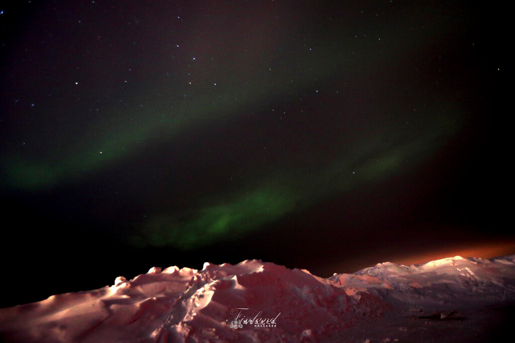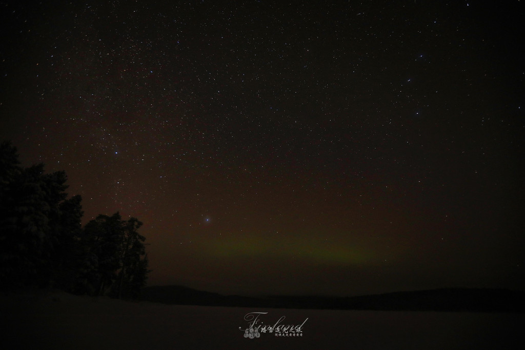 肉眼看到的基本是乳白色,相机记录的才会隐隐泛绿,再加个滤镜的话才像样嘛~ 毕竟-33℃+KP2,能拥有张星空极光照我也应该知足了吧。