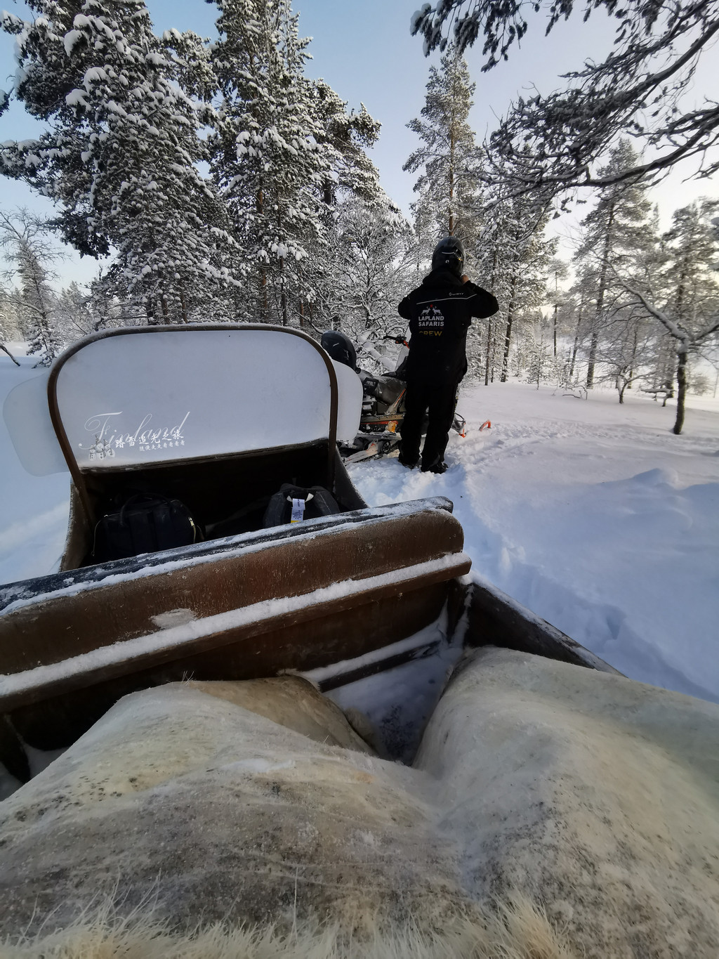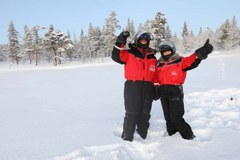 穿戴完毕跟着小哥步行去停车点,小哥会详细介绍如何驾驶、乘坐以及一些规矩、手势等。确定大家全部明白掌握后我们就出发了,因为我们是单数,妈妈就坐在小哥车后的拖斗里,为了御寒还会盖上张大大的鹿皮。