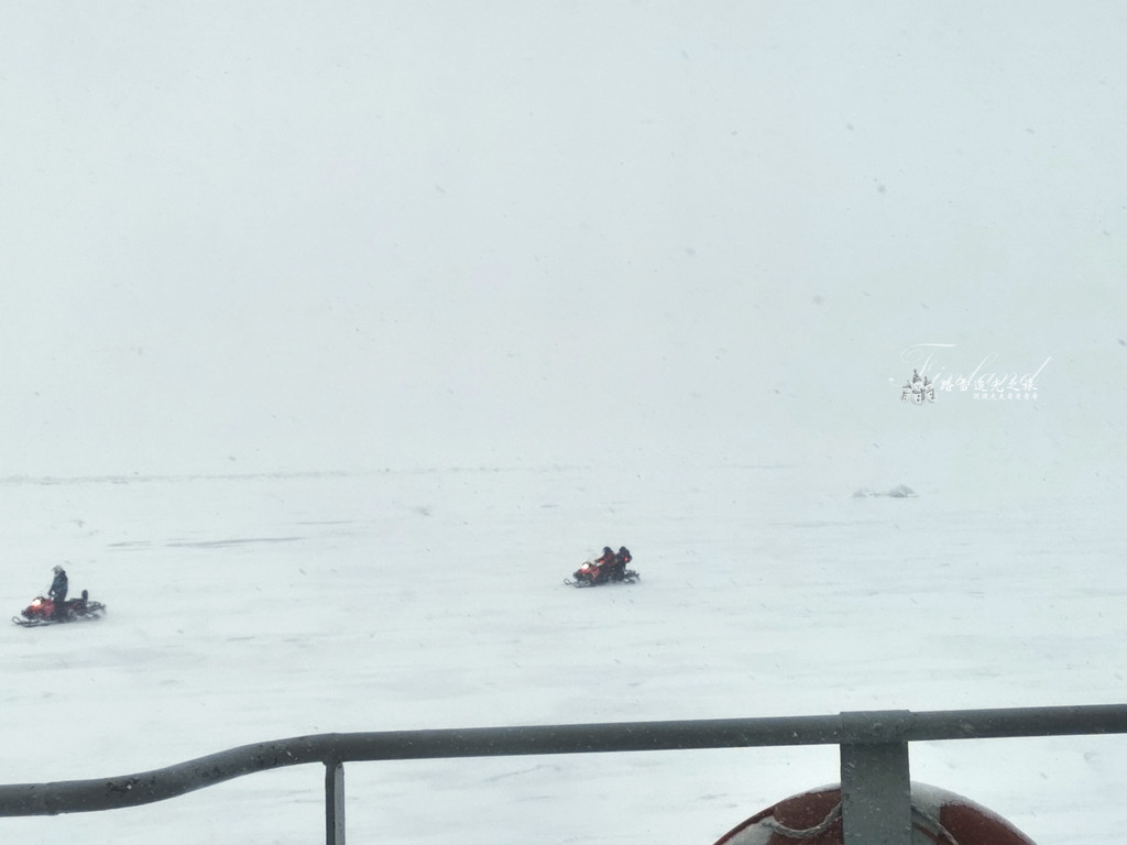 如果不是从码头上船还有其他选择嘛?有,这几位就是坐着雪上摩托赶来的~