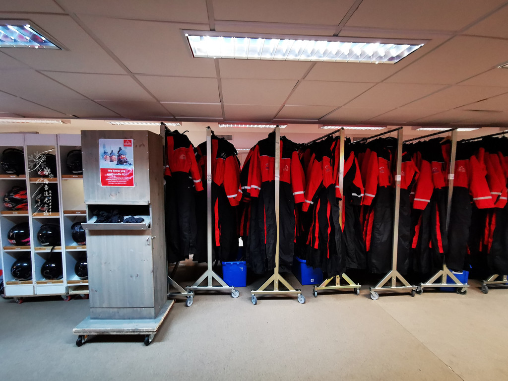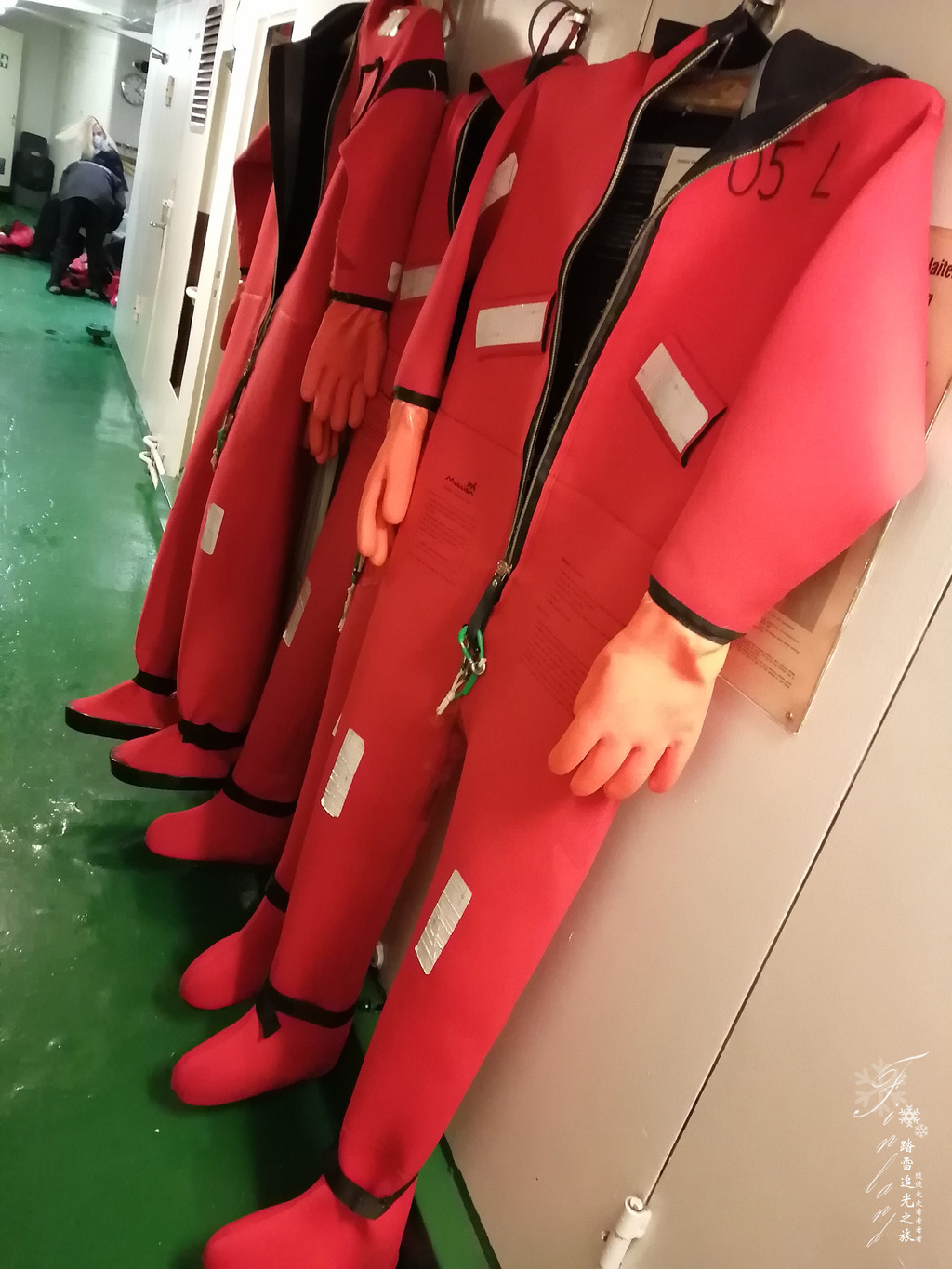 由于今天天气不太好,雪下的好大,结果我们一行五人最后就我一个决定去浮冰~ 按照腕带时间我是下午三点三刻那批,于是提前半小时去到更衣室,排了会儿队,大家可以根据身高去到不同房间门口等,进了房间需要脱掉外套和鞋子,然后工作人员会把防水服拿到门口,你直接站进连体衣里,再由工作人员帮忙穿好。然后就可以出发了~