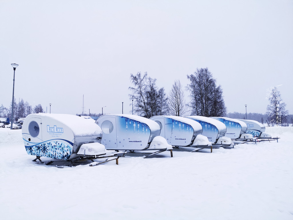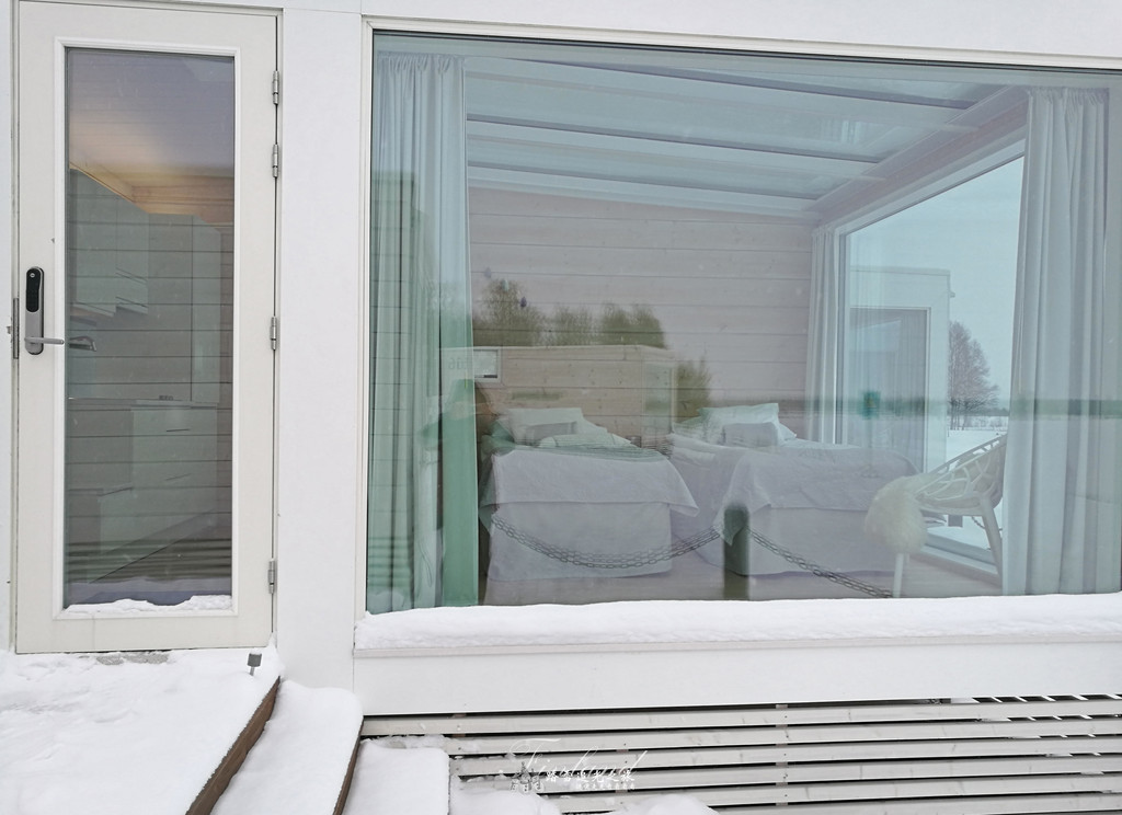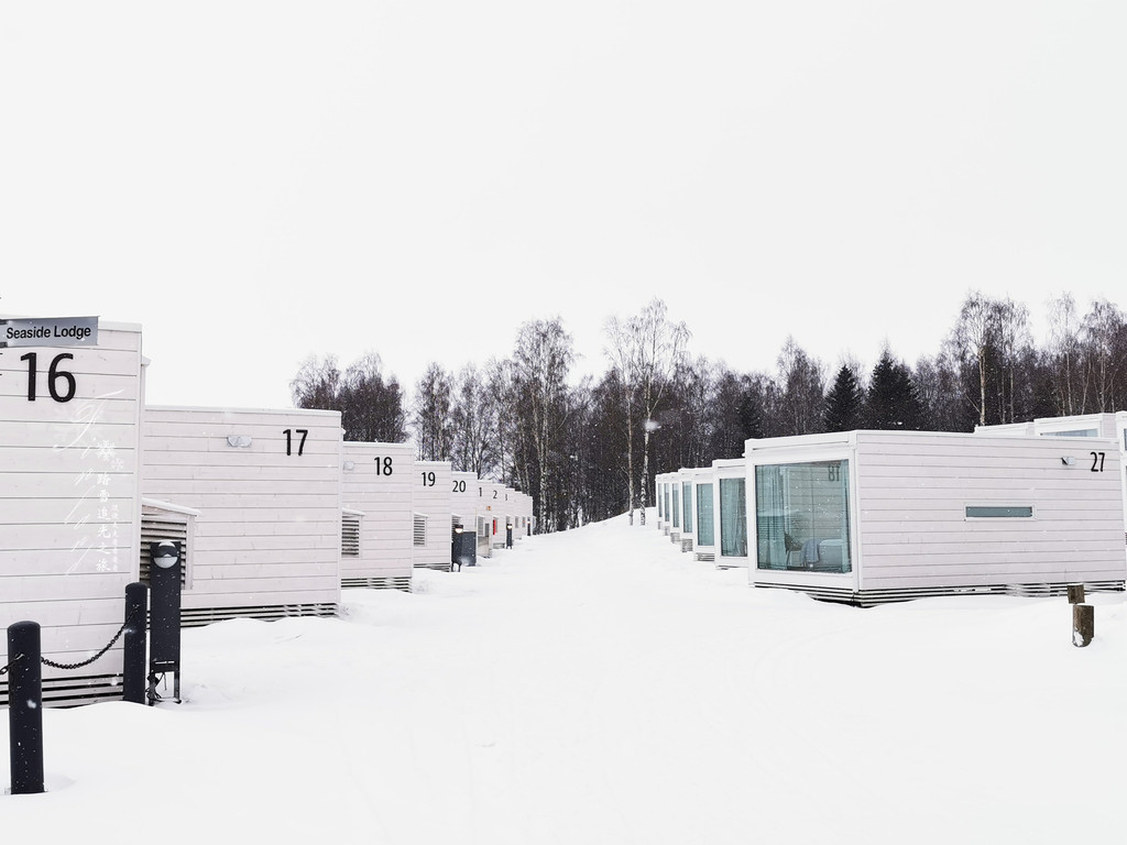 这里还有家凯米网红酒店,海景玻璃屋,早知道位置就在冰雪城堡边上,又是破冰船的接送点,住一晚倒也是不错的体验。一个个类似集装箱的房间就建在波的尼亚海湾边上,玻璃房270°视野也是观测极光的不错选择,有机会的话夏季还可以来体验无敌海景和奇妙的午夜阳光~