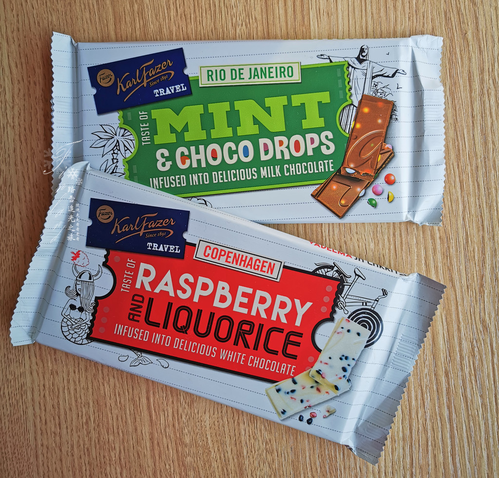 Fazer巧克力超市种类非常多,有些机场里没有,比如各种类型的排块,这两款个人比较喜欢,特别白巧口味很特别~