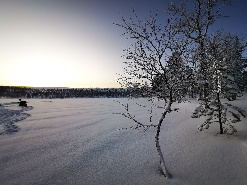 大家都是第一次驾驶,刚开始速度都不快,慢慢渐入佳境,伴着日出在白雪皑皑上驰骋真是一种独特的体验!看着天际慢慢泛红,小哥贴心的让我们稍作停留拍了几张照片。
