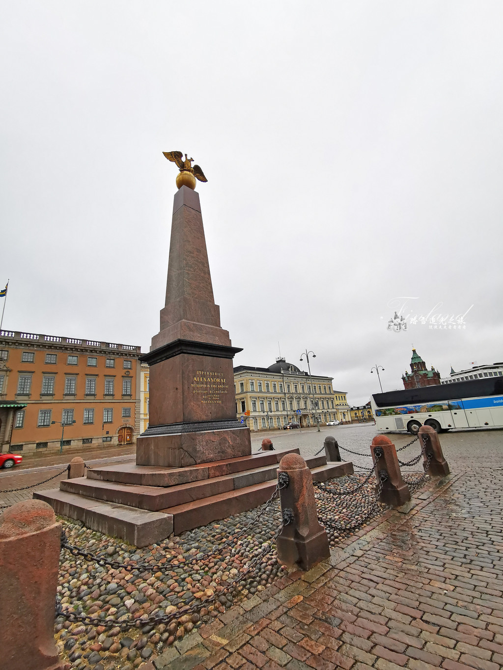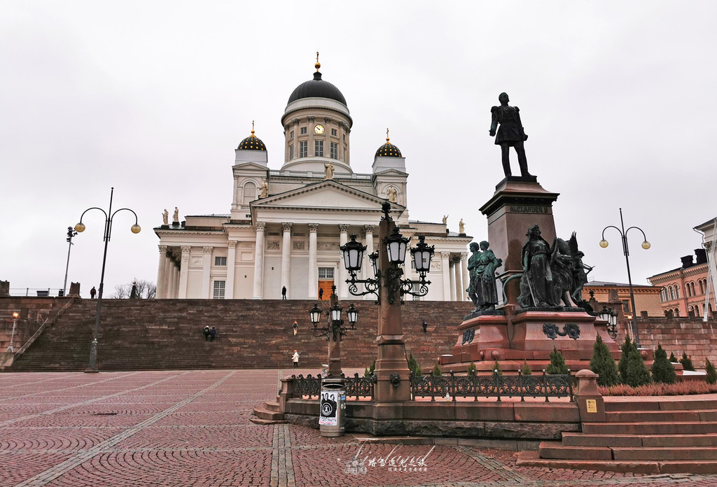 大教堂前的广场上竖立着建于1894年的沙皇亚历山大二世铜像,以纪念他给予芬兰广泛自治。