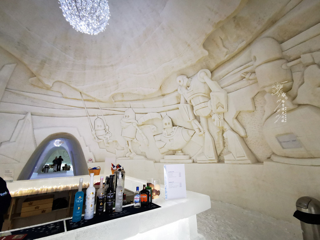 本来出发前想预定在冰雪城堡里用餐,可惜官网一直上不去,后来也因为行程更改就放弃了,不过竟然来了,就在冰吧里来上一杯冰杯伏特加吧。