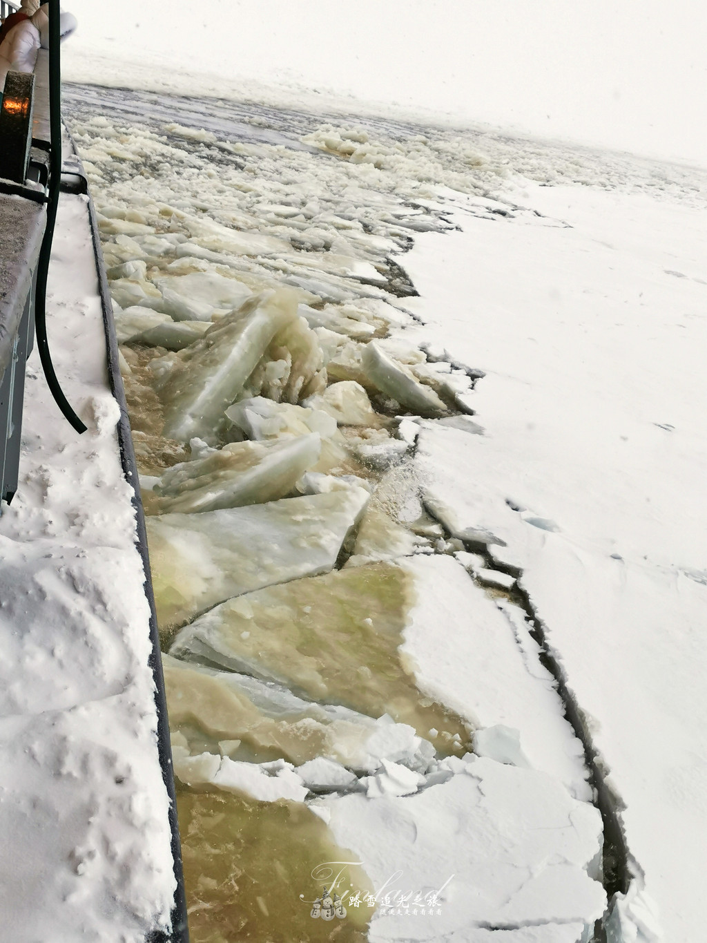 刚开出去一段距离可能每天往返多了又靠近码头,都是些小碎冰。