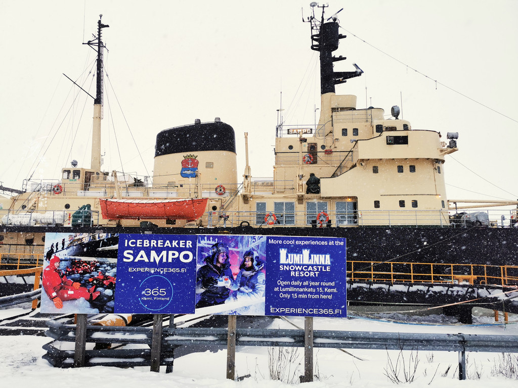 桑普号破冰船建于1960年,1987年退役后由凯米政府购买用于商业旅游巡航,成为世界上第一艘专门从事旅游业的商业破冰船。我们在几艘破冰船中选择桑普号也是出于这个原因。