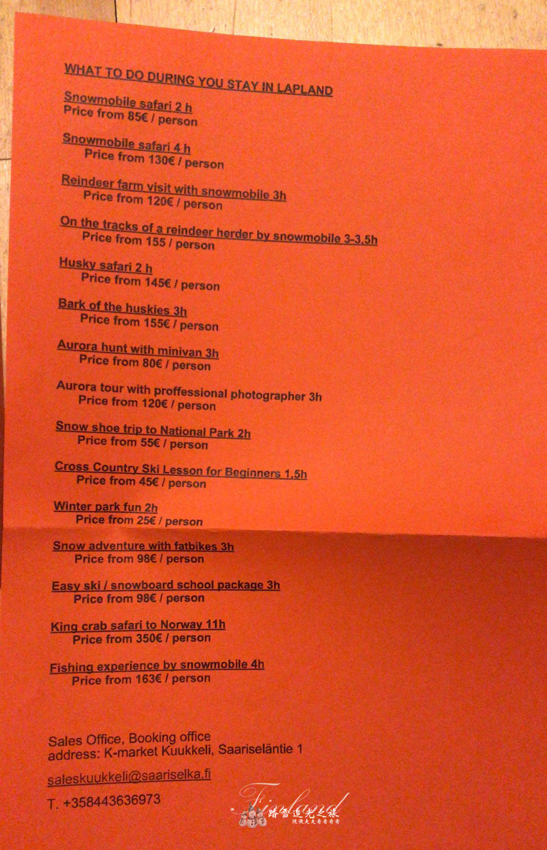 本来当天的活动就这样结束了,因为这几天的极光指数都不高,本来佛系的我们想着能看的话哪里都看的到,看不到的话追光的活动也白搭。但是我总觉得不管如何总要努力下,就当是种体验吧,于是综合了几天的活动安排,决定晚上报个简单的追光团,其实也就是一位向导开车带着我们出去追光,一人80欧,在追光团里也算是比较便宜的了。